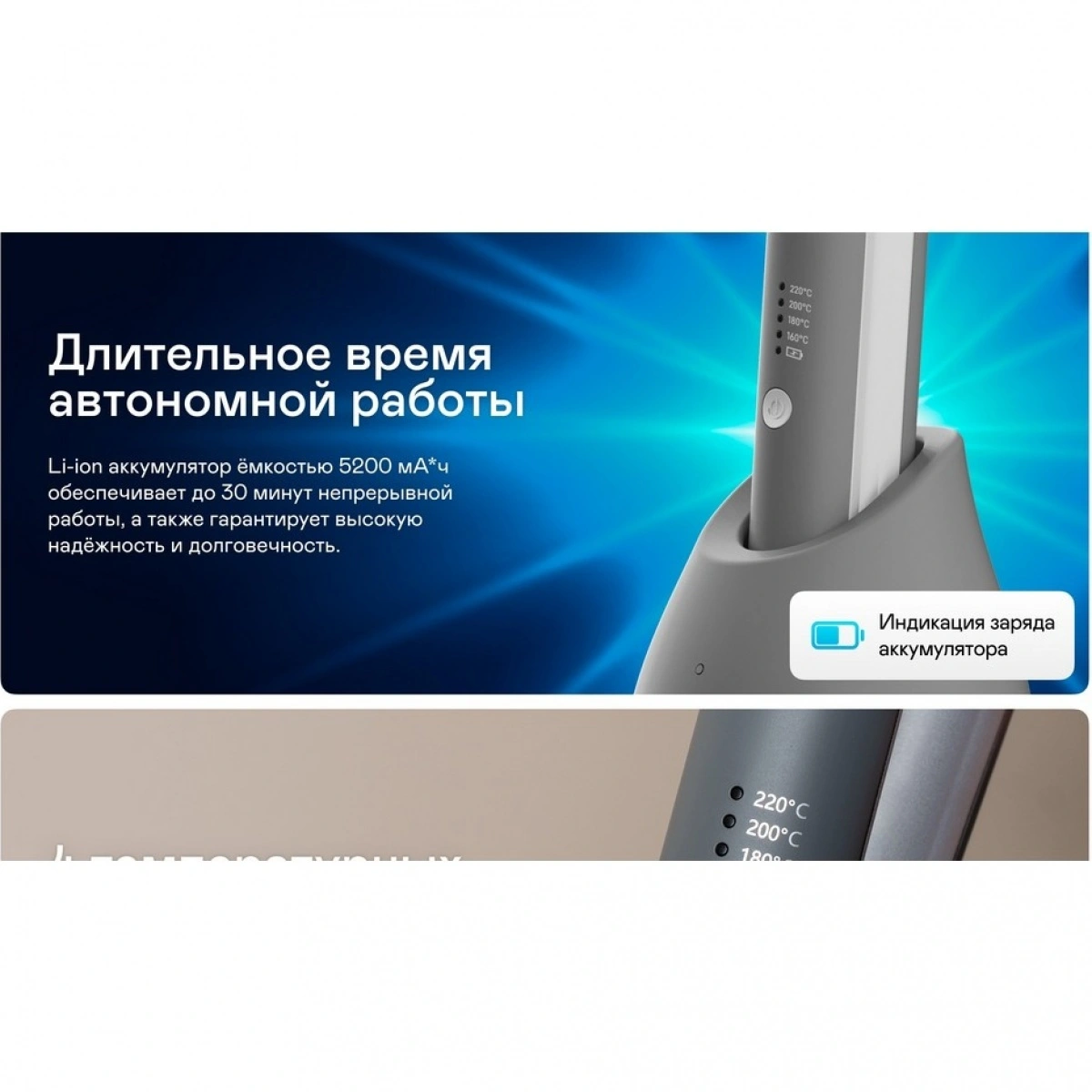 До 30 минут автономной работы с Li-ion аккумулятором