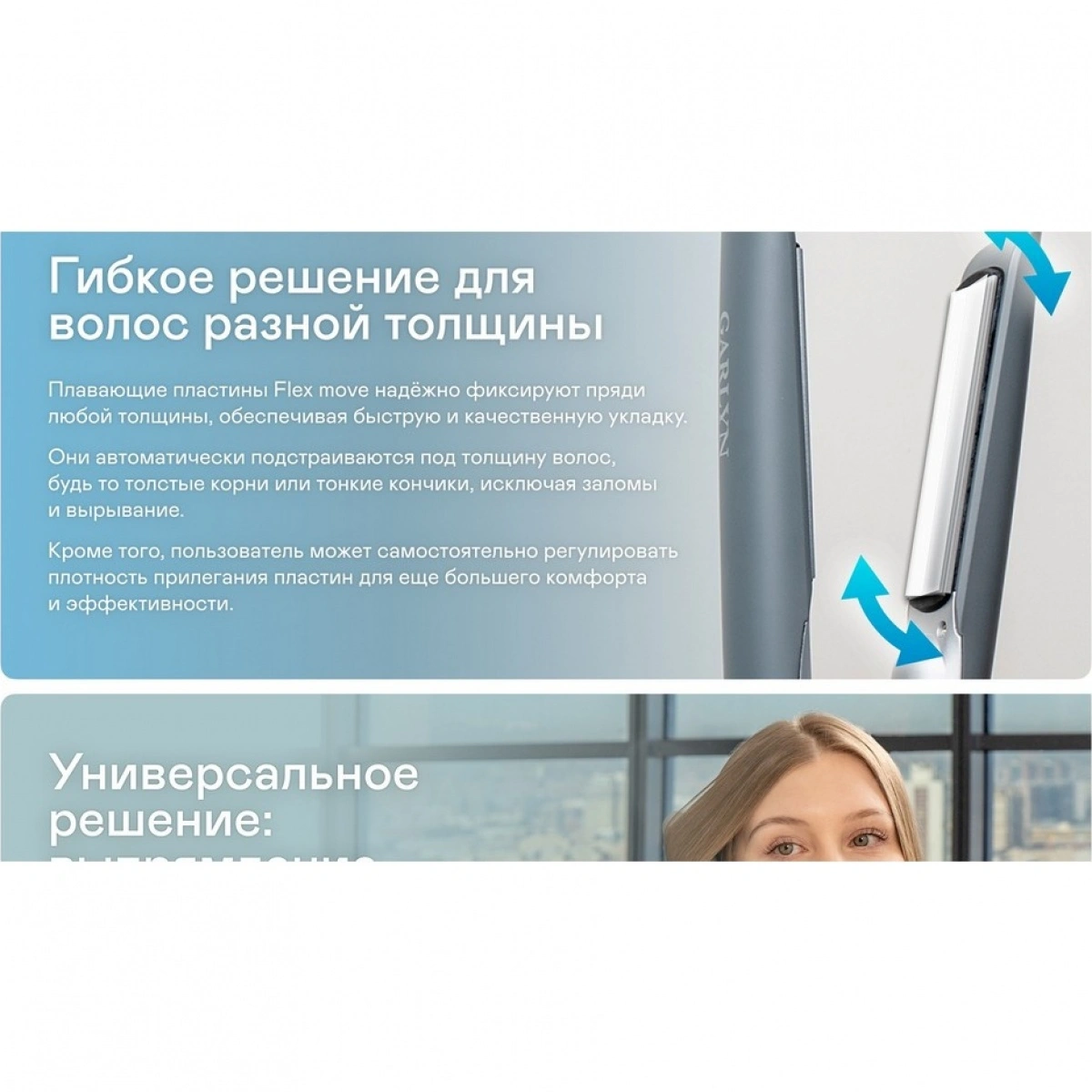 Беспроводной выпрямитель с ёмким аккумулятором и 4 режимами для укладки где угодно. Покрытие Ceramic Silk Pro и плавающие пластины Flex Move обеспечивают эффективное выпрямление и завивку, гарантируя безопасность и здоровье волос.