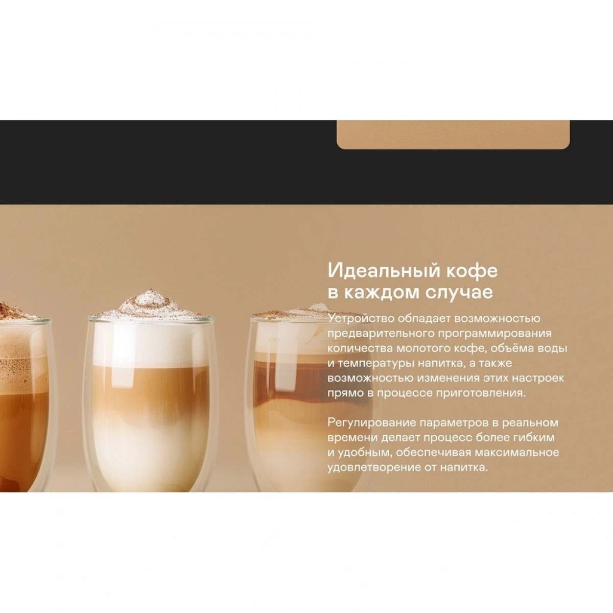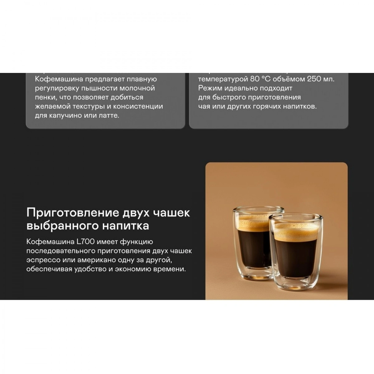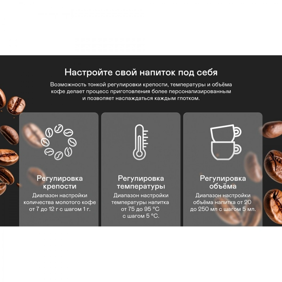 Регулировка объёма, крепости, температуры кофе