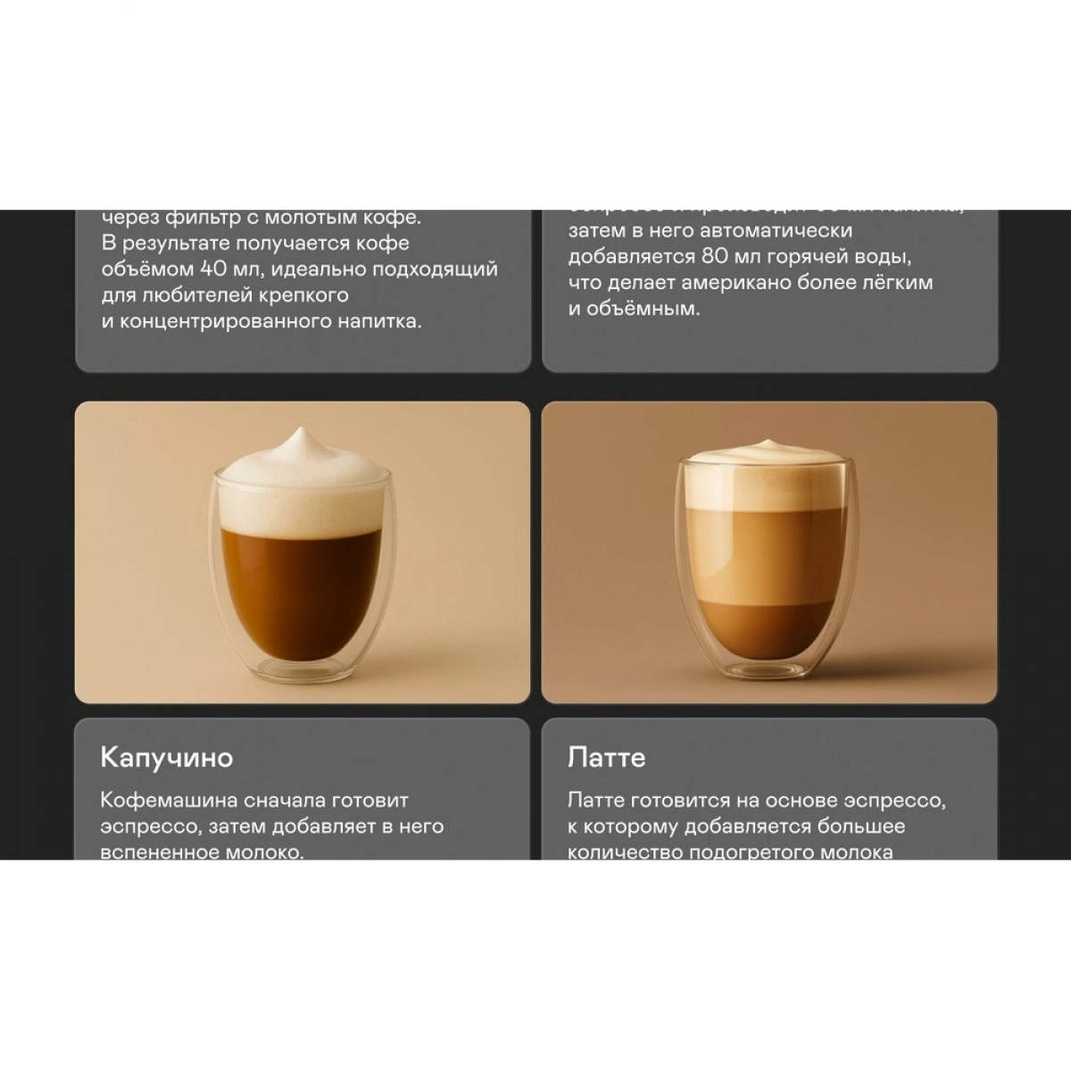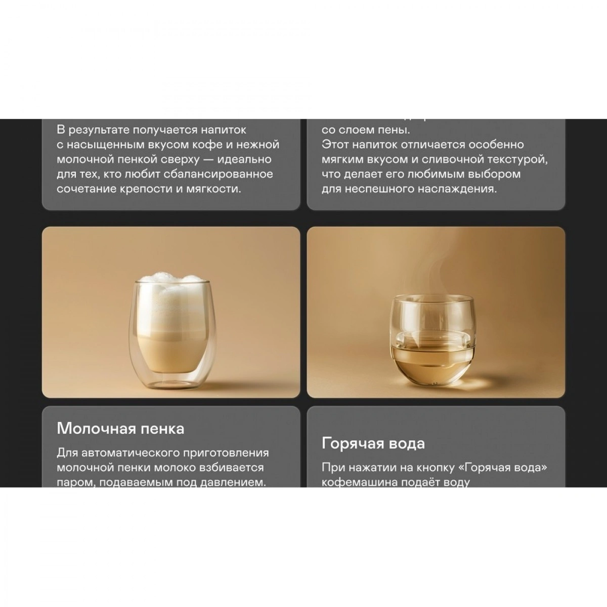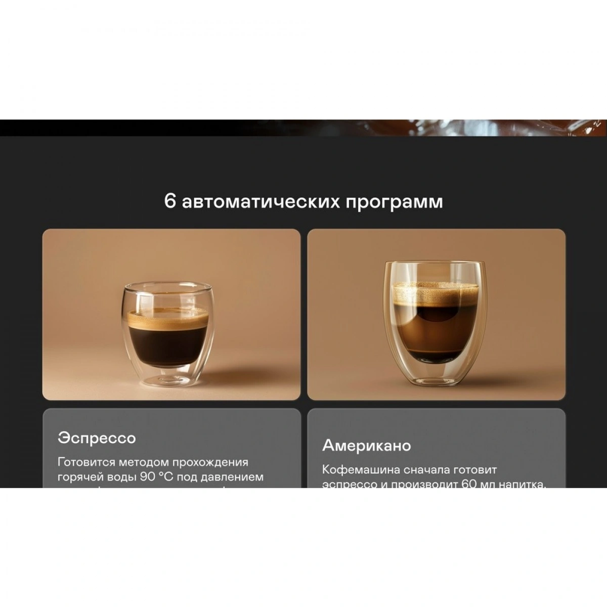 Регулировка объёма, крепости, температуры кофе