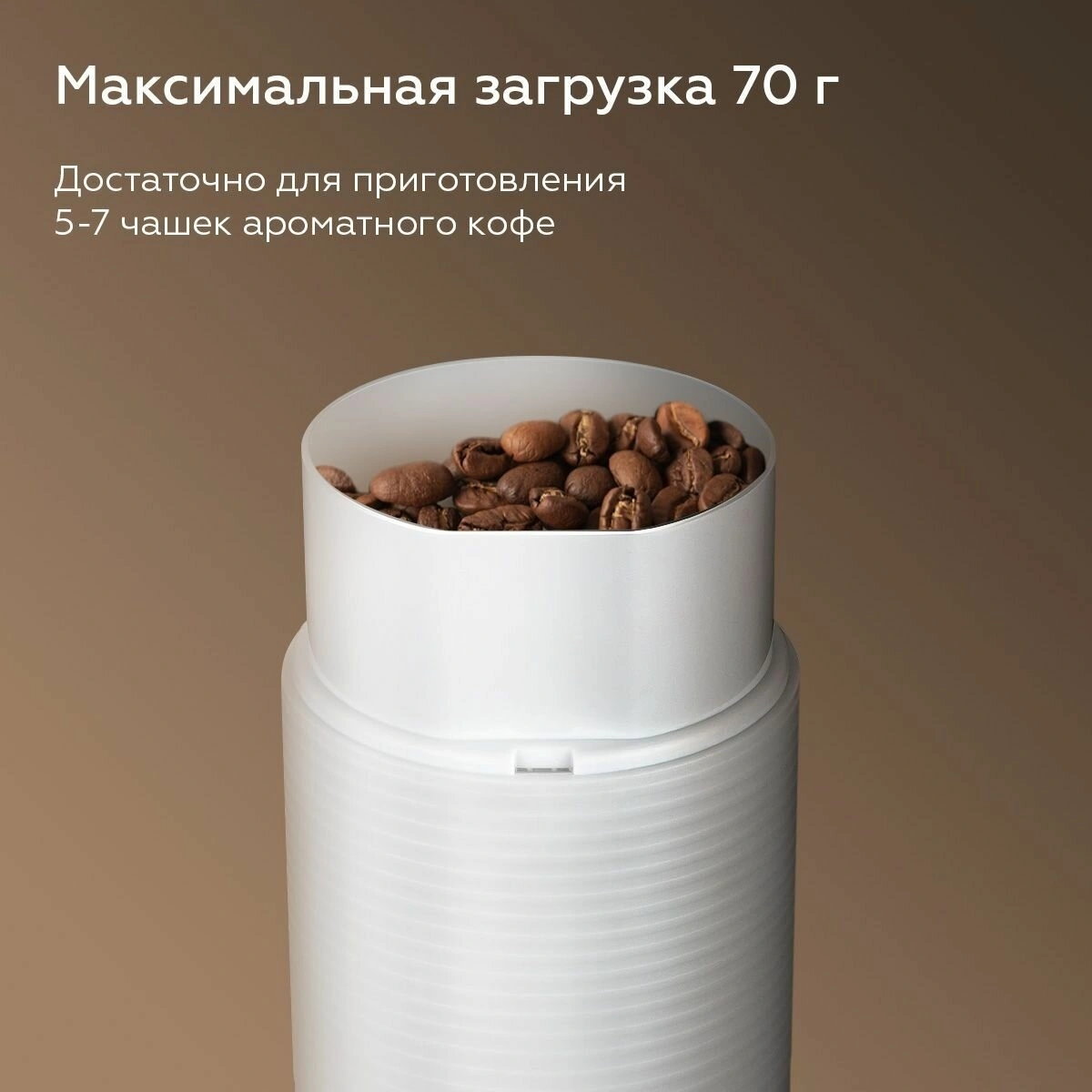 Кофемолка оснащена ротационным ножом, обеспечивающим равномерный помол до 70 граммов кофейных зерен за один раз — это отличный объем для приготовления нескольких чашек вашего любимого напитка. Несмотря на отсутствие функции регулировки степени помола, данная модель отлично подходит для базовых нужд любителей кофе.