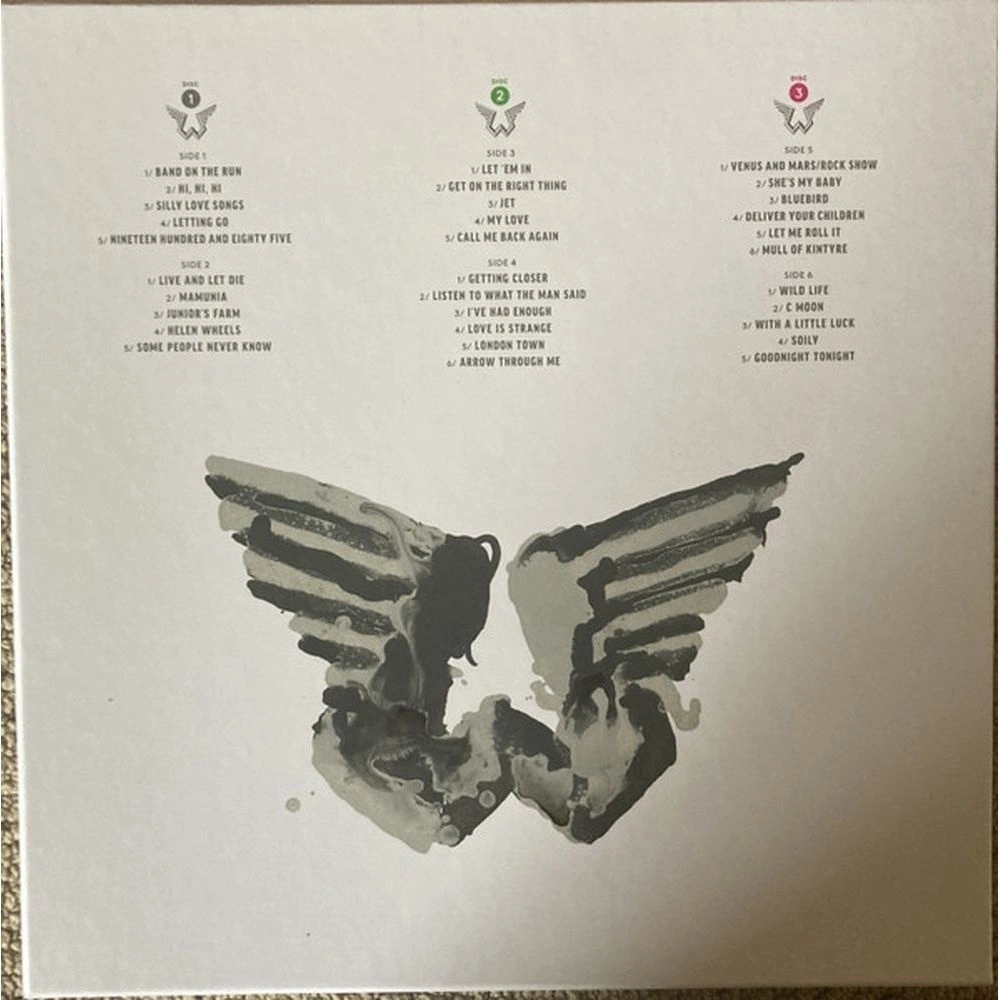 Wings — это антология группы, определившей звучание 1970-х годов, лично курируемая Полом Маккартни. В неё вошли нестареющие мировые хиты, в том числе «Band on the Run», «Live and Let Die», «Jet» и «Let 'Em In» — песни, которые и по сей день звучат в его живых выступлениях. 3LP на черном виниле с буклетом и постером. Коллекцию «Wings» разработали Пол и Обри «По» Пауэлл из Hipgnosis. В буклете представлены предисловие Пола и оригинальные портреты группы, сделанные Хамфри Оушеном.