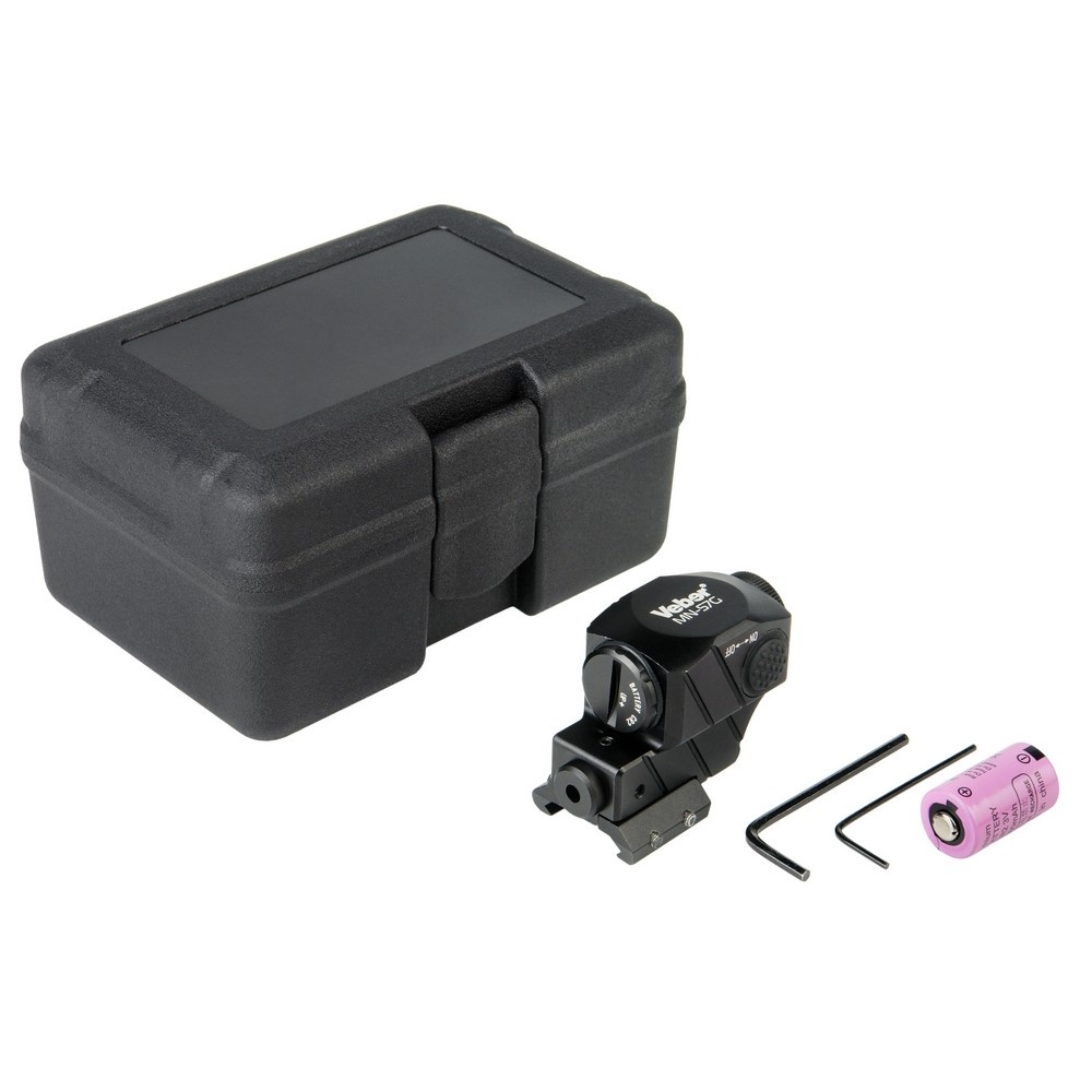 Лазерный целеуказатель Veber MN-57G отличается небольшими весом и размерами и может устанавливаться на пистолеты и другое пневматическое и огнестрельное оружие с планкой Weaver для спортивной и развлекательной стрельбы, позволяя повысить скорость прицеливания и точность попадания. Для выверки после установки на оружие служат два микрометрических винта.