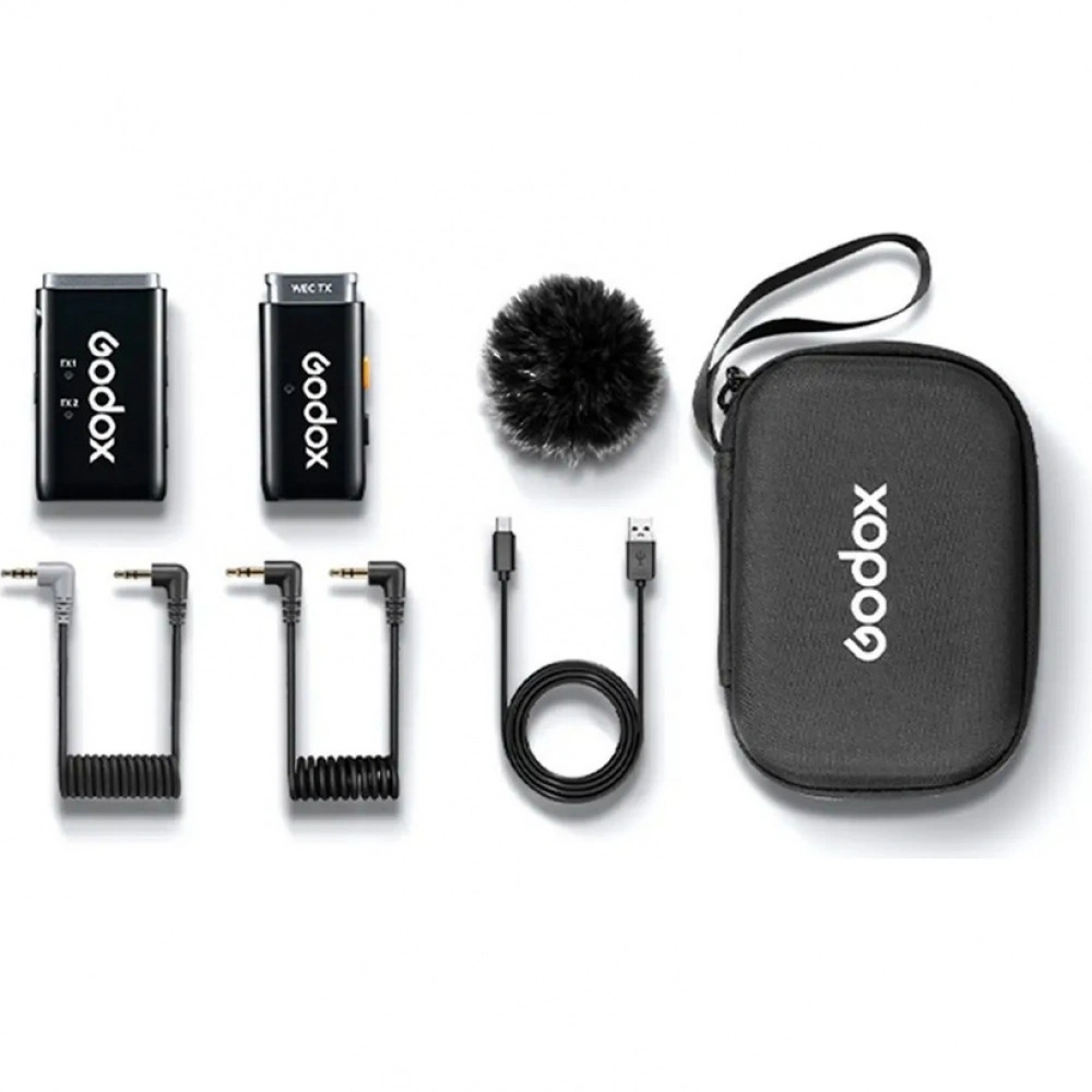 Godox WEC Kit1 – беспроводная радиосистема, состоящая из приемника и передатчика со встроенным микрофоном для записи аудио при съемке видеоконтента в помещении и на улице.
