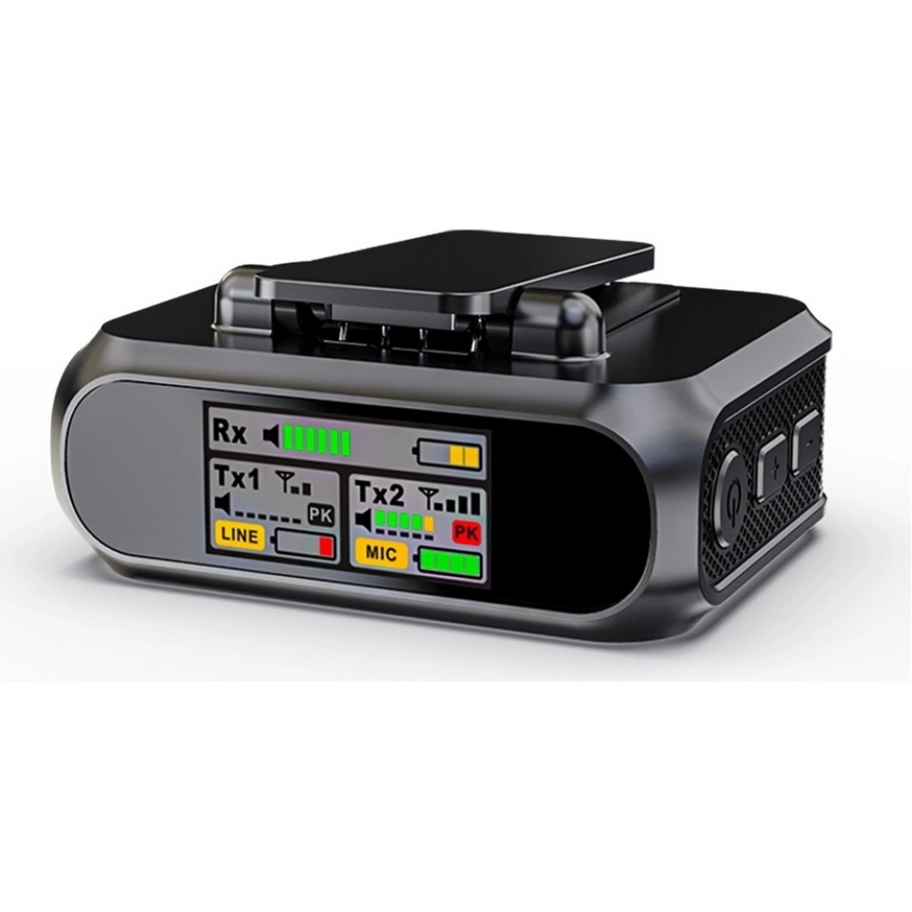 Четкий дисплей позволяет легко отслеживать состояние вашего беспроводного микрофона, например уровень громкости, заряда батареи и уровень радиосигнала передатчика и приемника.