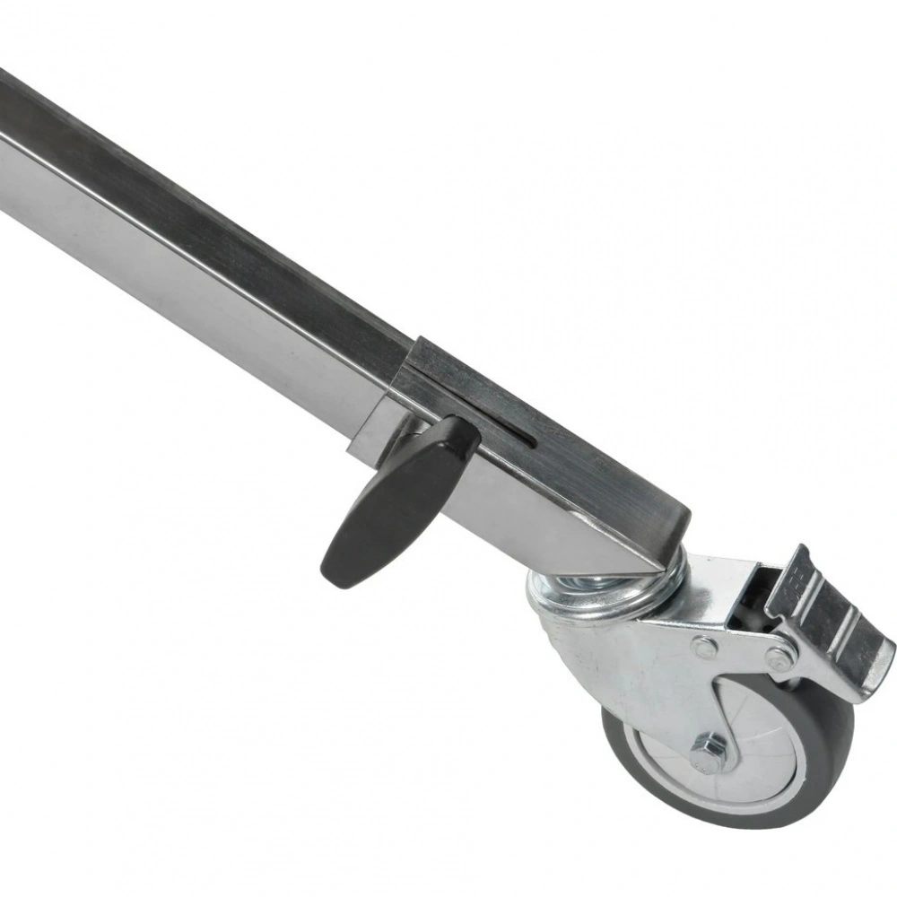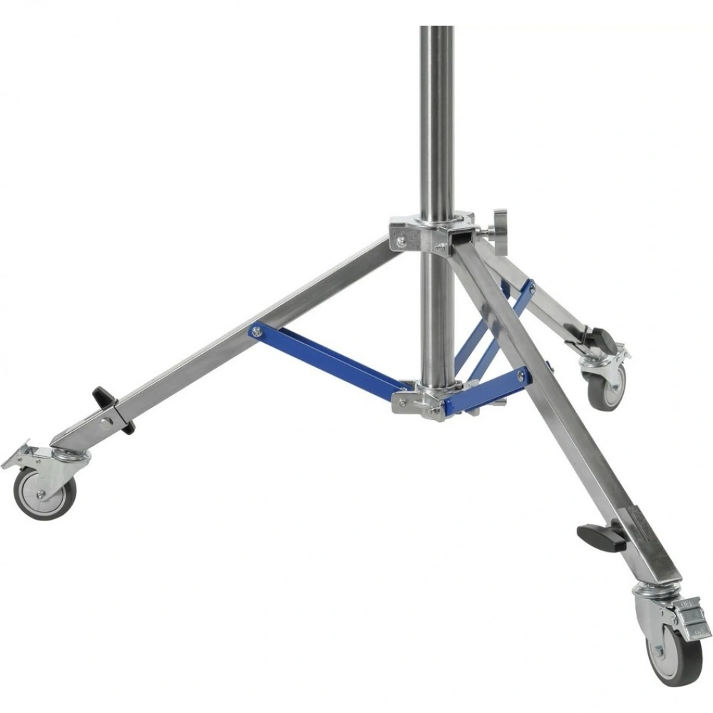 Перемещение стойки обеспечивают три съемных колеса, а безопасную неподвижную установку — индивидуальные тормоза на каждом из них. Это позволяет мгновенно зафиксировать положение тяжелой камеры на любом этапе работы. Для стационарного использования стойки колеса могут быть демонтированы.