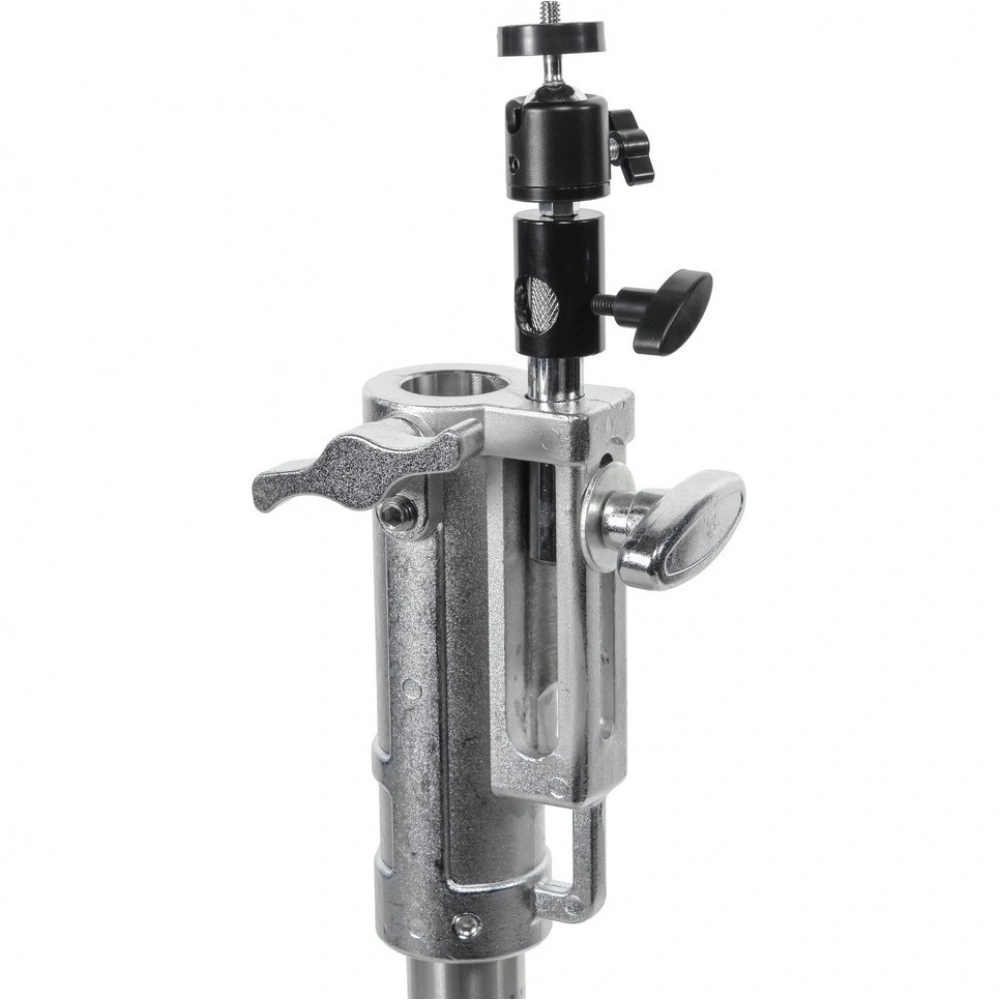 Стойка LVM-M оборудована шаровой головкой для панорамирования камеры на 360°. Монтаж осуществляется через комбинированный адаптер: штифт Baby Pin 5/8" с винтовым фиксатором и стандартное гнездо Junior.