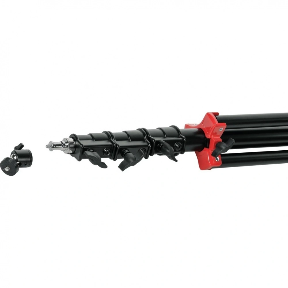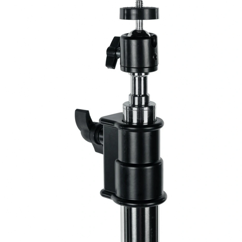 Фото- или видеокамеру можно установить на стойку с помощью универсального несъемного адаптера диаметром 5/8 дюйма (16 мм) с резьбовым соединением 1/4 дюйма. Для регулировки угла съемки используется шаровая мини-головка, позволяющая быстро настраивать наклон установленного оборудования и выбирать оптимальный ракурс.