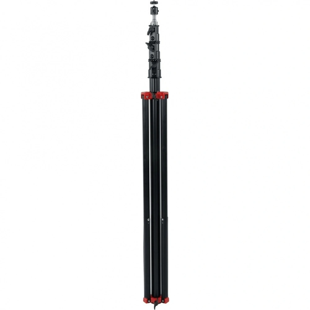 Высота стойки плавно изменяется в диапазоне от 135 до 390 сантиметров благодаря телескопическому выдвижению секций центральной колонны. Степень устойчивости и общая высота изделия дополнительно регулируется положением ног основания.