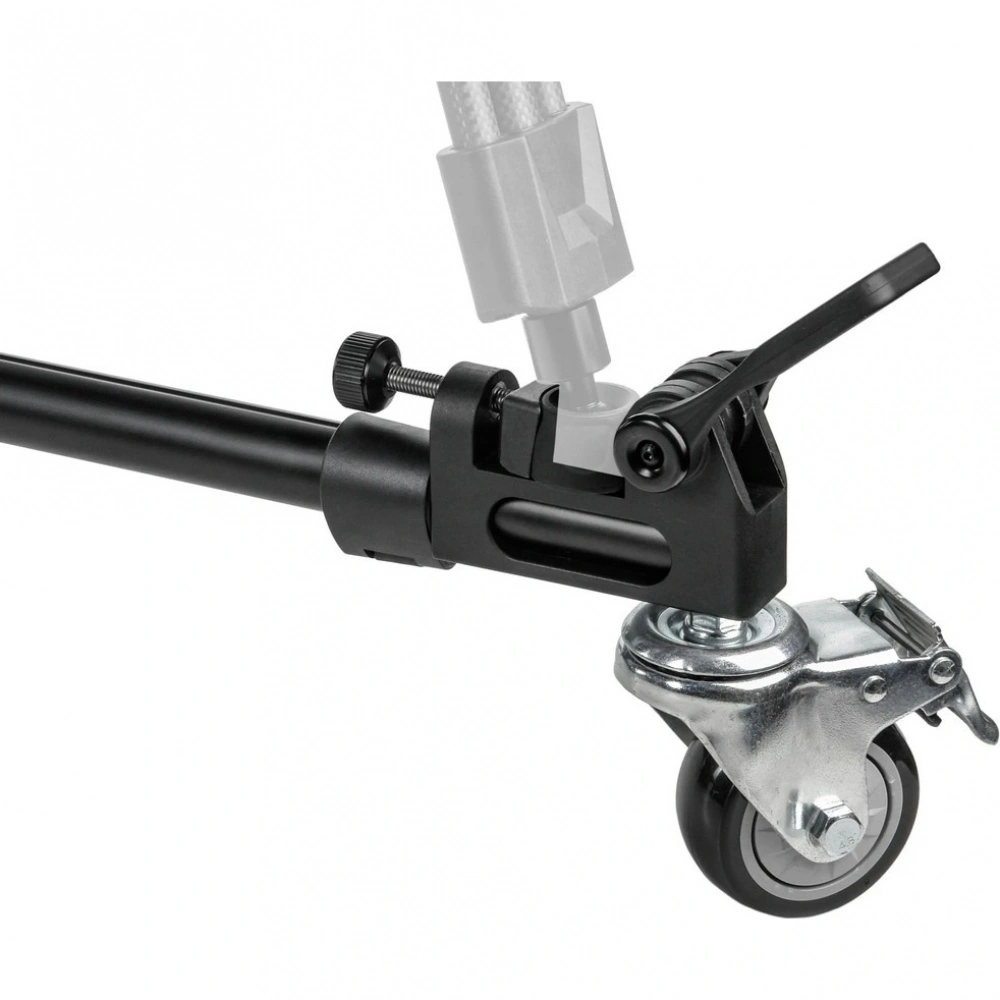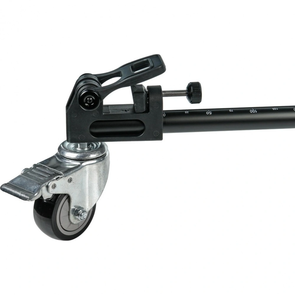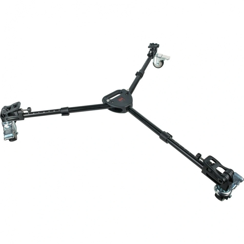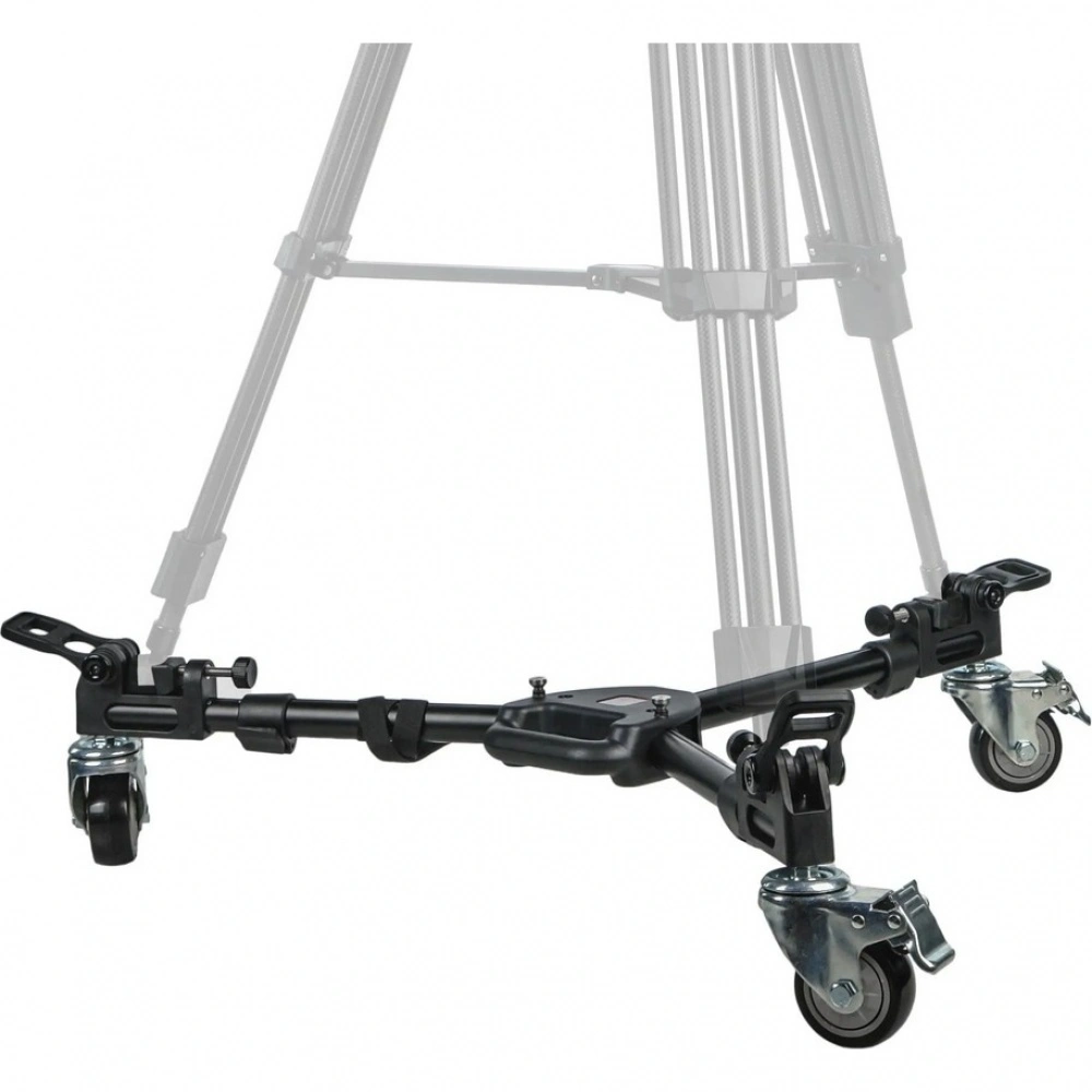 Три резиновых колеса диаметром 75 мм гарантируют плавный и бесшумный ход, что особенно важно при видеосъемке. Благодаря повороту колес на 360 градусов тележка обладает высокой маневренностью в ограниченном пространстве. На каждом колесе установлен индивидуальный тормоз для надежной фиксации во время работы.