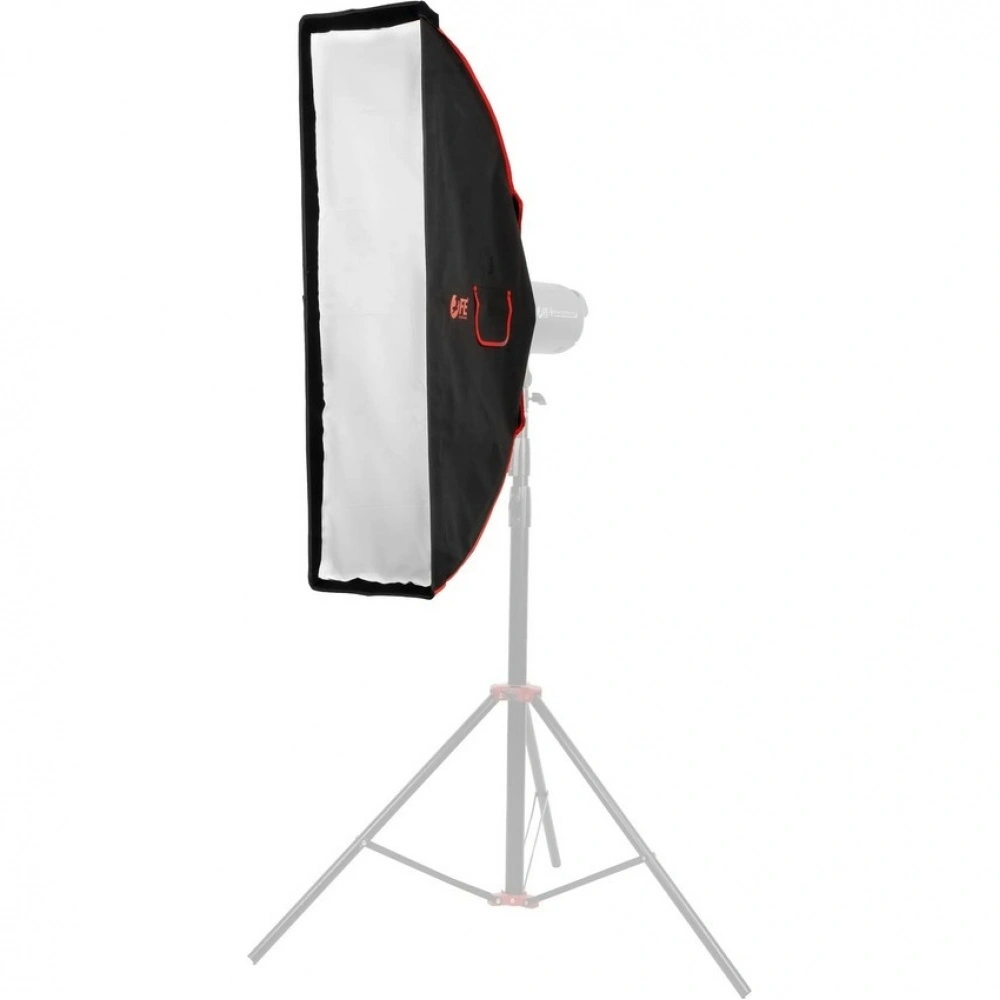 Falcon Eyes SBQ-SBII 2090 BW - световой модификатор для студийных приборов сбайонетом Bowens, предназначен для создания мягкого рассеянного освещения без резких теней и бликов. Размер софтбокса (стрипбокса) 20х90 см, глубина 40 см.