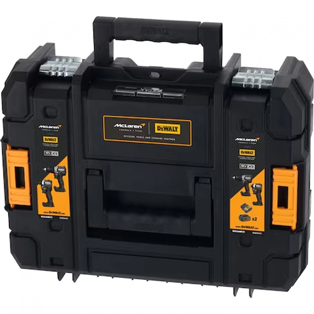 Всемирно известный бренд DeWALT стал официальным партнером по поставке инструментов для команды McLaren Formula 1. В знак дружеских отношений компания DeWALT недавно выпустила лимитированную серию инструментов, в том числе дрель-шуруповерт DCD85ME (на базе DCD850) и шуруповерт DCF85M (на базе DCF805). Инструмент оформлен в стилистике McLaren под карбон, выглядит эффектно. В комплект входят два аккумуляторa McLaren Edition 18V 5 Ач и зарядное устройство. Набор поставляется в кейсе TSTAK черного цвета.