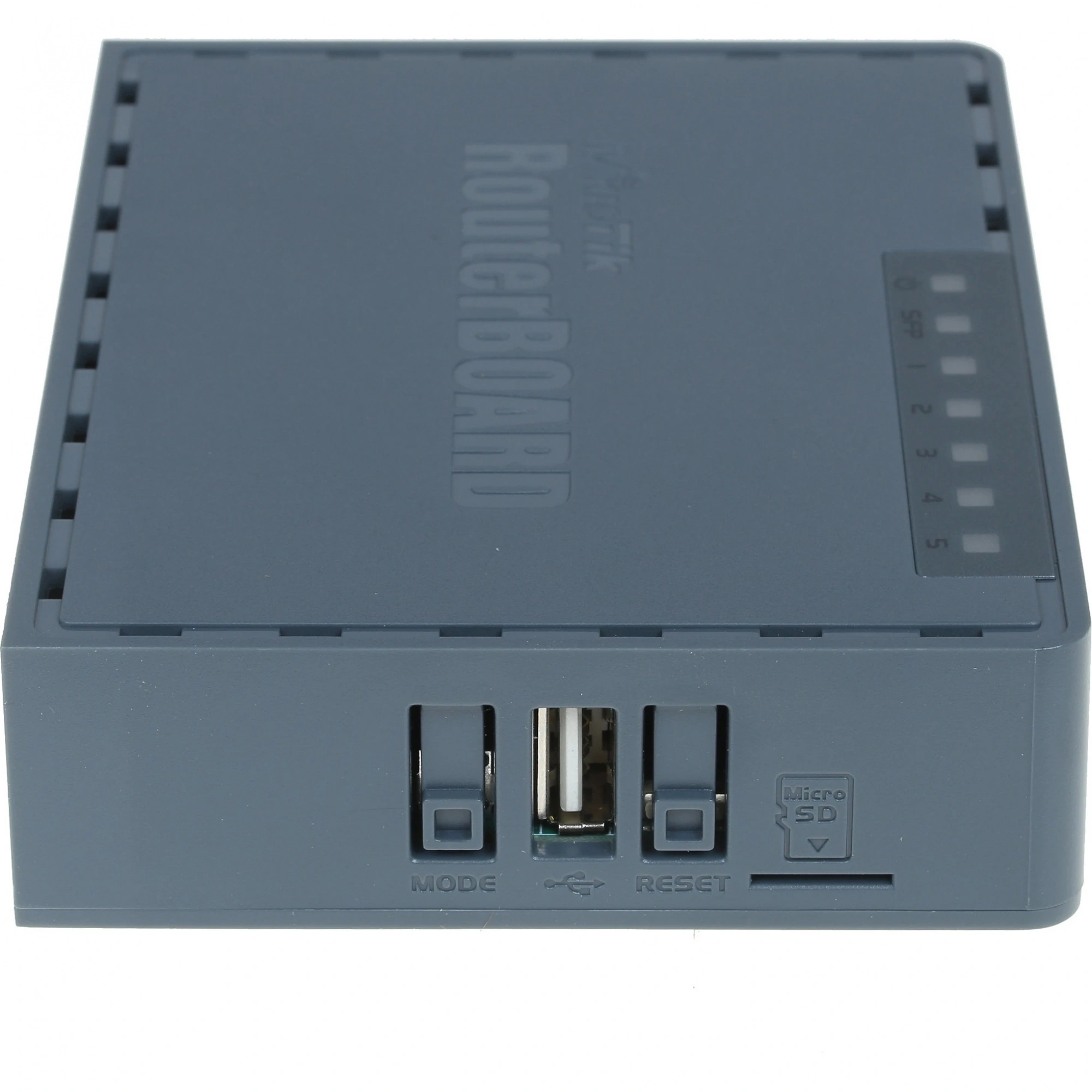 Маршрутизатор Mikrotik hEX S отличается высоким уровнем быстродействия, который обеспечивается за счет 880-мегагерцового процессора и значительного (256 МБ) объема оперативной памяти. Имеющийся USB-порт можно использовать для подключения GSM-модема. Также в наличии слот для карты памяти microSD. Маршрутизатор укомплектован адаптером питания и документацией. Габаритные размеры корпуса модели составляют 113x89x28 мм. Масса маршрутизатора – 345 г.