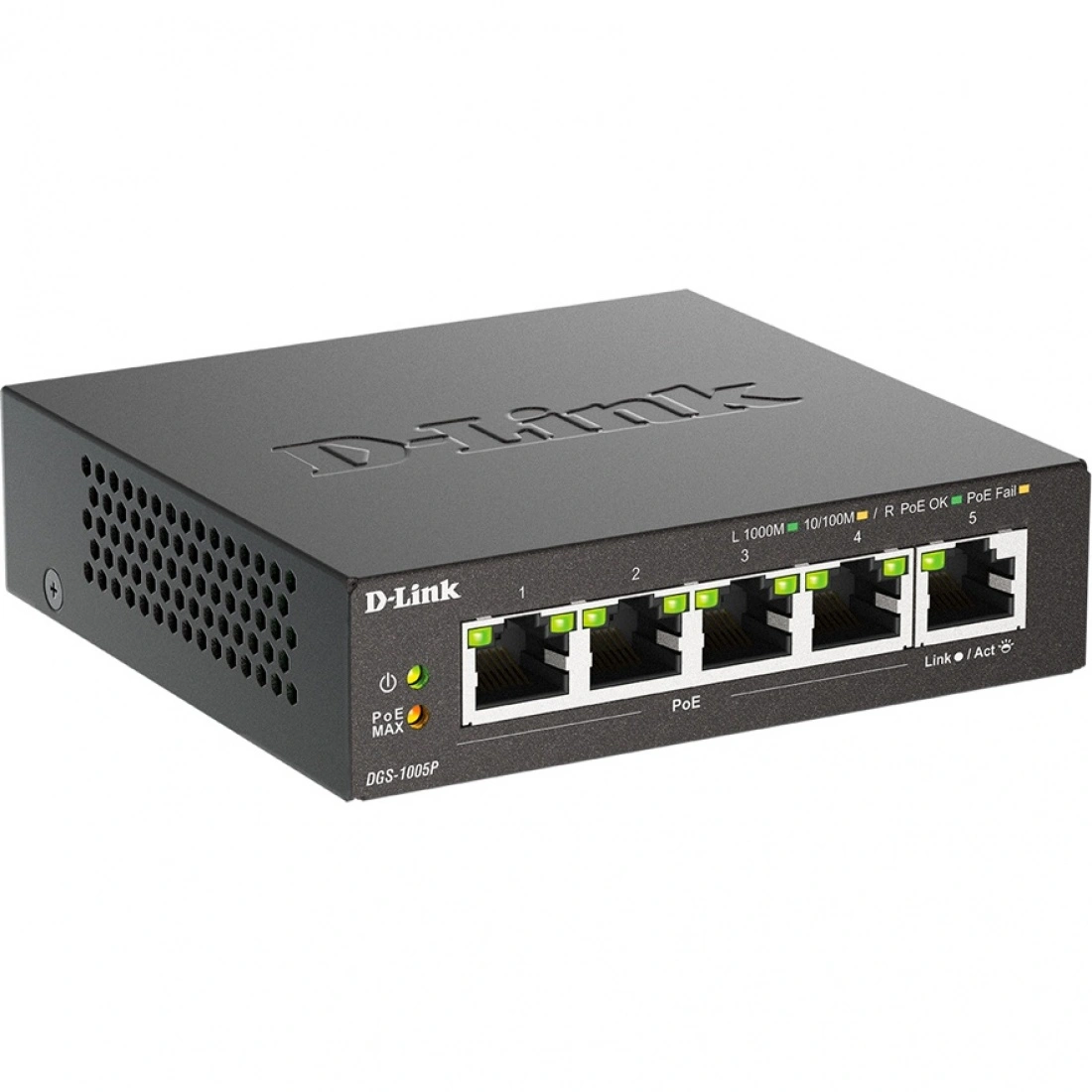 4 порта DGS-1005P поддерживают стандарт IEEE 802.3at PoE. Каждый порт PoE подает питание мощностью до 30 Вт при общем бюджете коммутатора 60 Вт, что позволяет пользователям подключать к DGS-1005P устройства, совместимые со стандартом 802.3at. Это позволяет размещать оборудование в труднодоступных местах вне зависимости от расположения электрических розеток и минимизировать прокладку кабеля.
