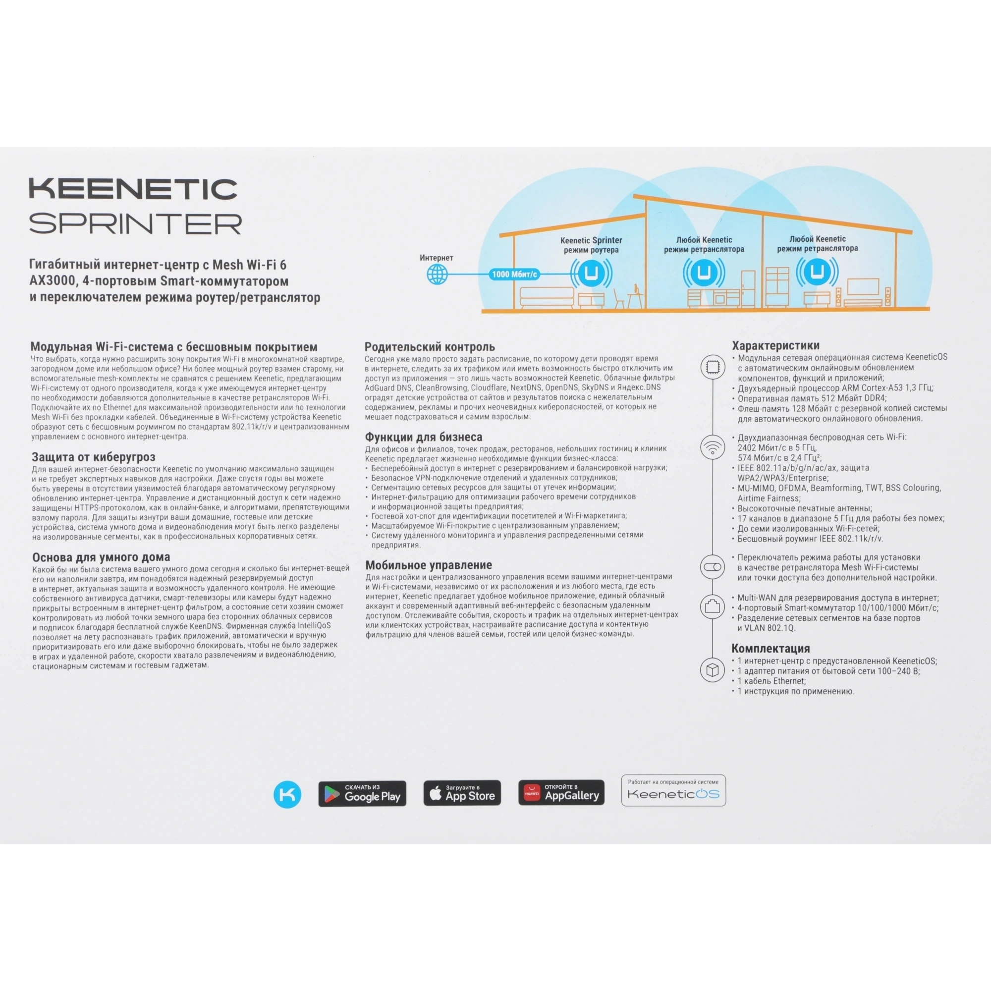 Wi-Fi роутер Keenetic Sprinter (KN-3711) - стоимость товара 8856 руб. в интернет-магазине КотоФото. Характеристики, фото и описание доступны на карточке товара. Купить товар можно на сайте онлайн или заказать по телефону 8(495)137-52-98 в Москве, а забрать в пункте самовывоза или оформить доставку на дом.