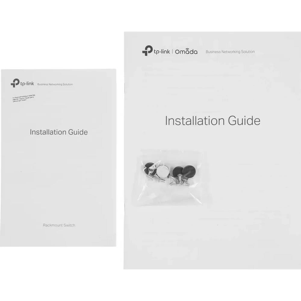 Коммутатор TL-SX3008F, Кабель питания, Руководство по настройке, Комплект для монтажа в стойку, Резиновые ножки