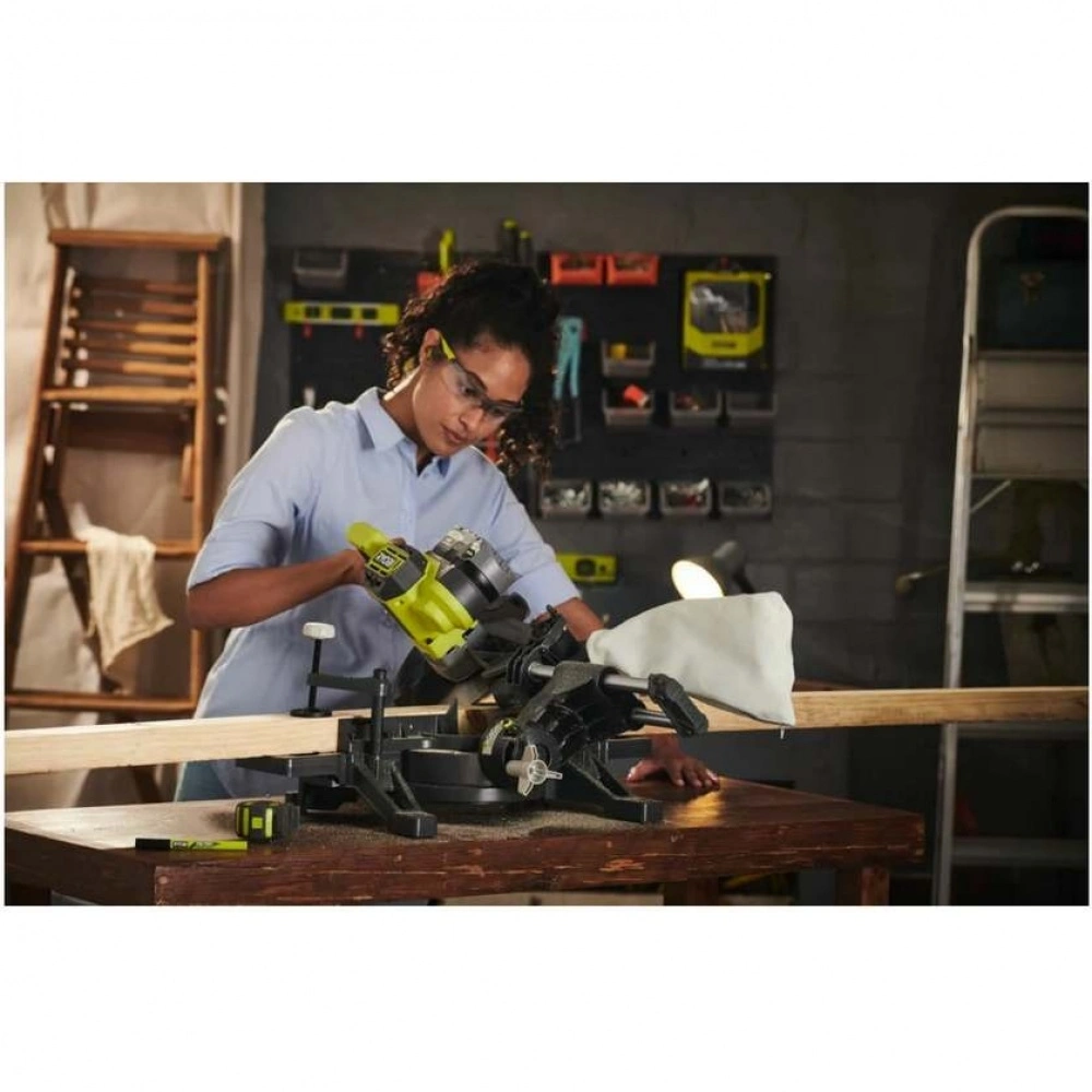 Торцовочная пила Ryobi 18В RMS18190-0 5133005502 - компактная и легкая, удобная в переноске. Предназначена для аккуратного реза под различными углами в древесине различной твердости.
