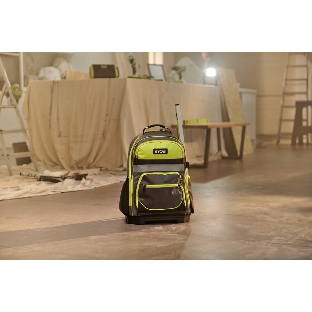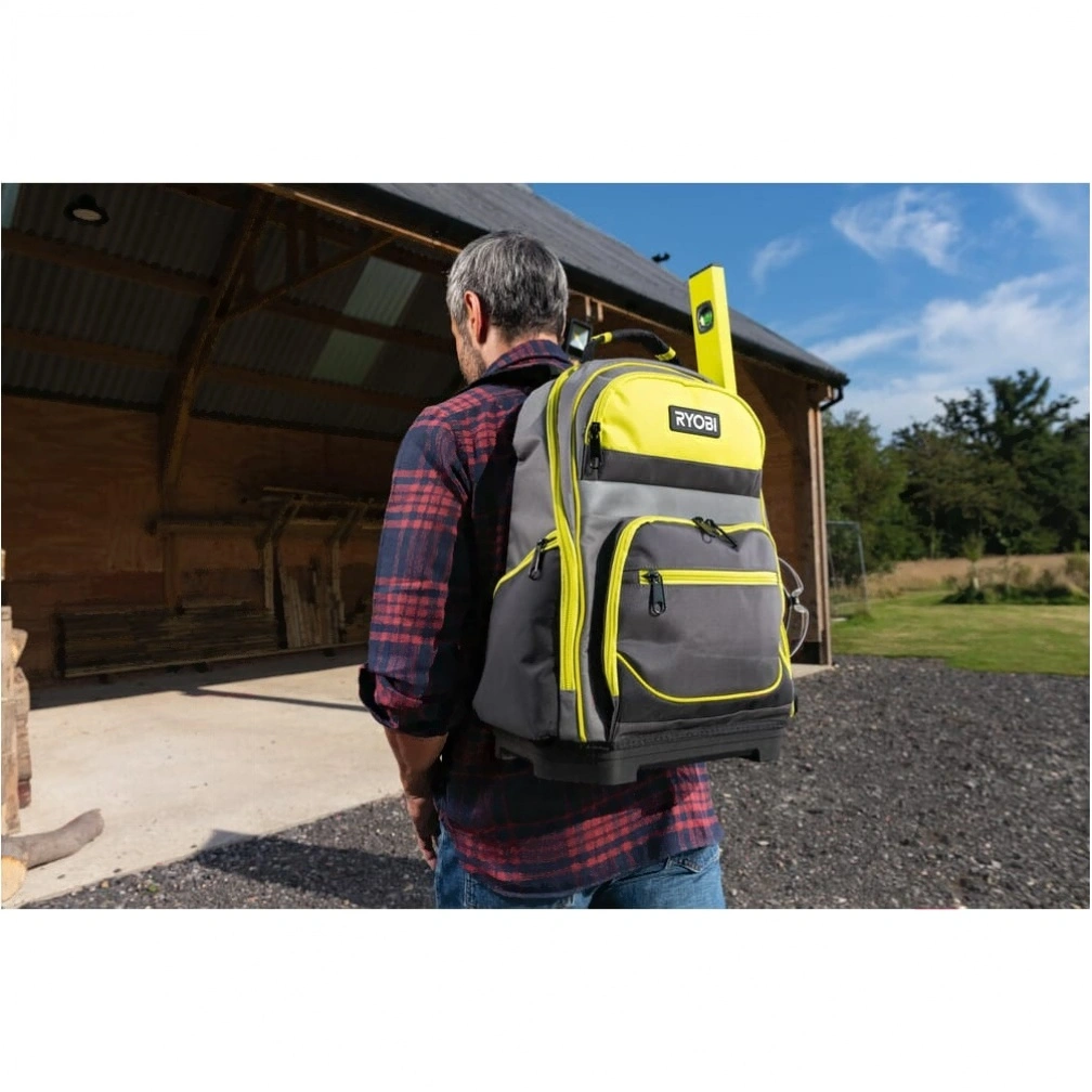 Ryobi рюкзак. Максимальная нагрузка 20кг. Рассчитан на работу в тяжелых условиях независимо от того, работаете ли вы в пыльном помещении или после дождливого дня.