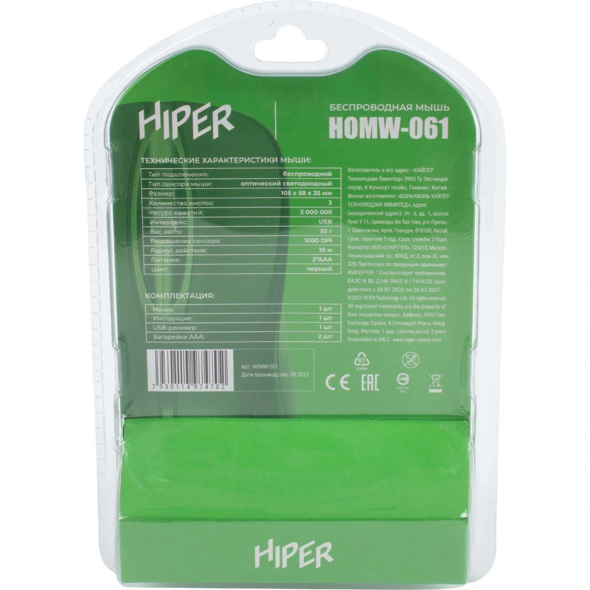 Отзывы о товаре Мышь HIPER HOMW-061 черный