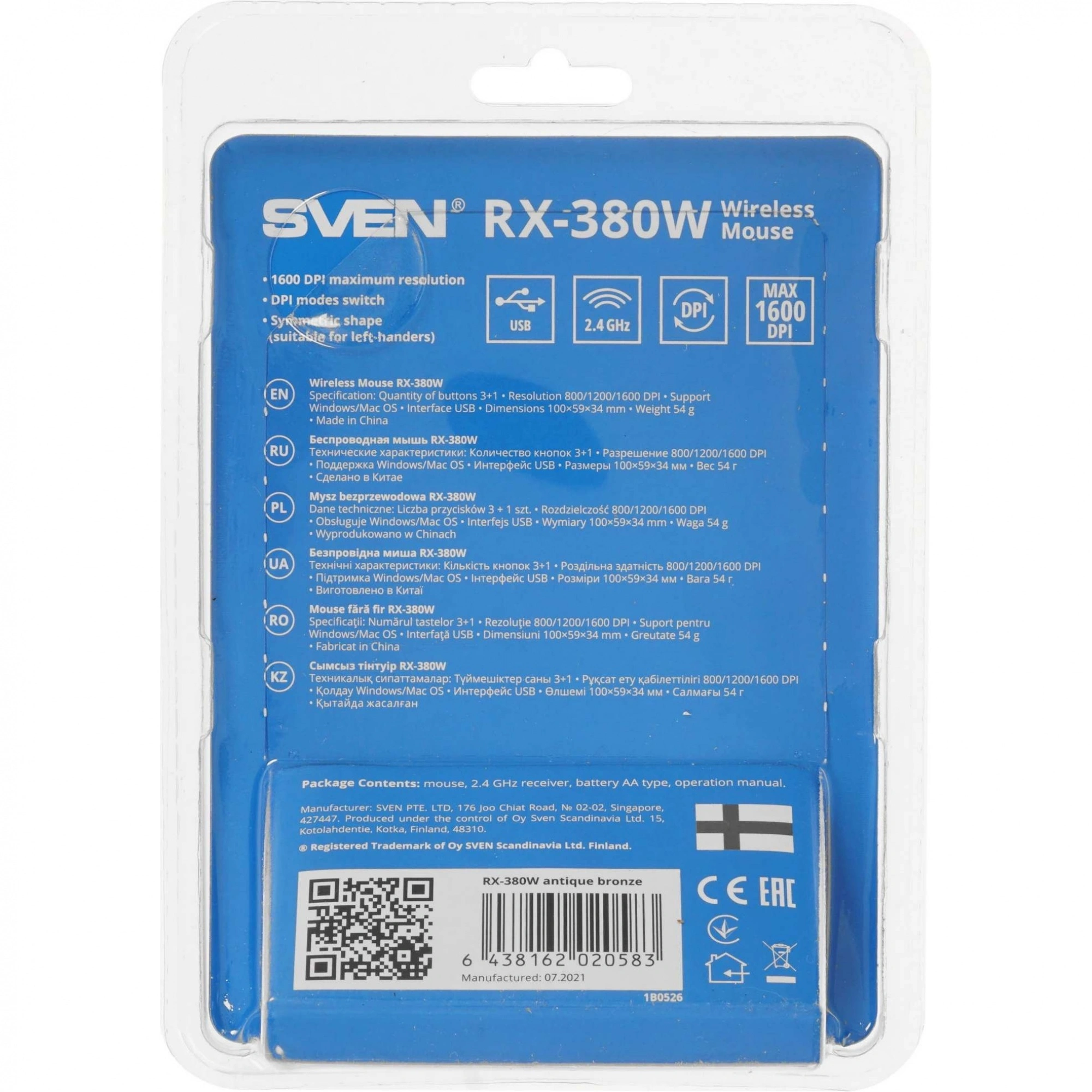 Мышь Sven RX-380W античная бронза (SV-020583) - данный товар вы можете купить по цене 448 руб. в интернет-магазине КотоФото. Характеристики, описание товара, фото и цена представлены на карточке товара. Заказать товар вы можете по телефону 8(495)137-52-98 в Москве.