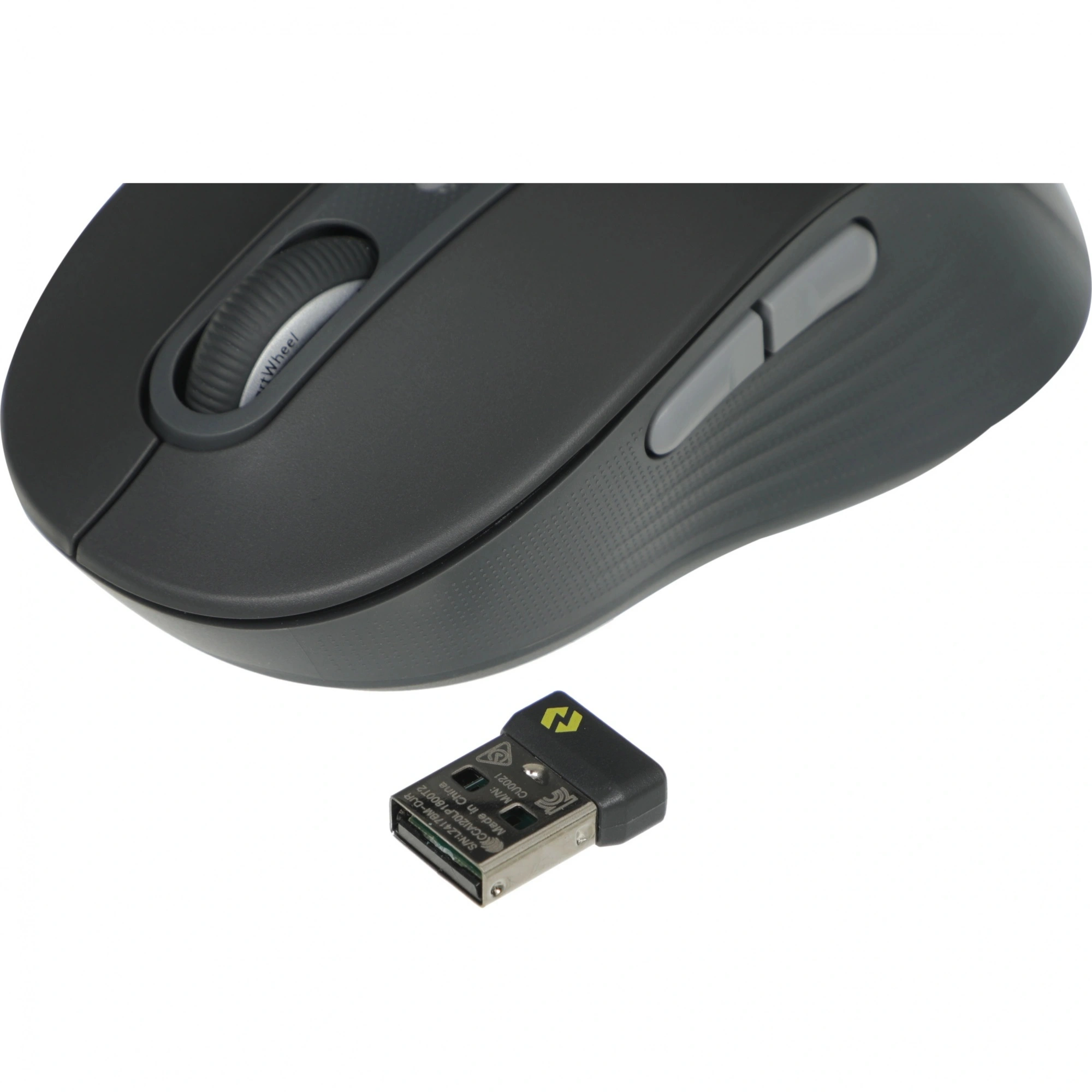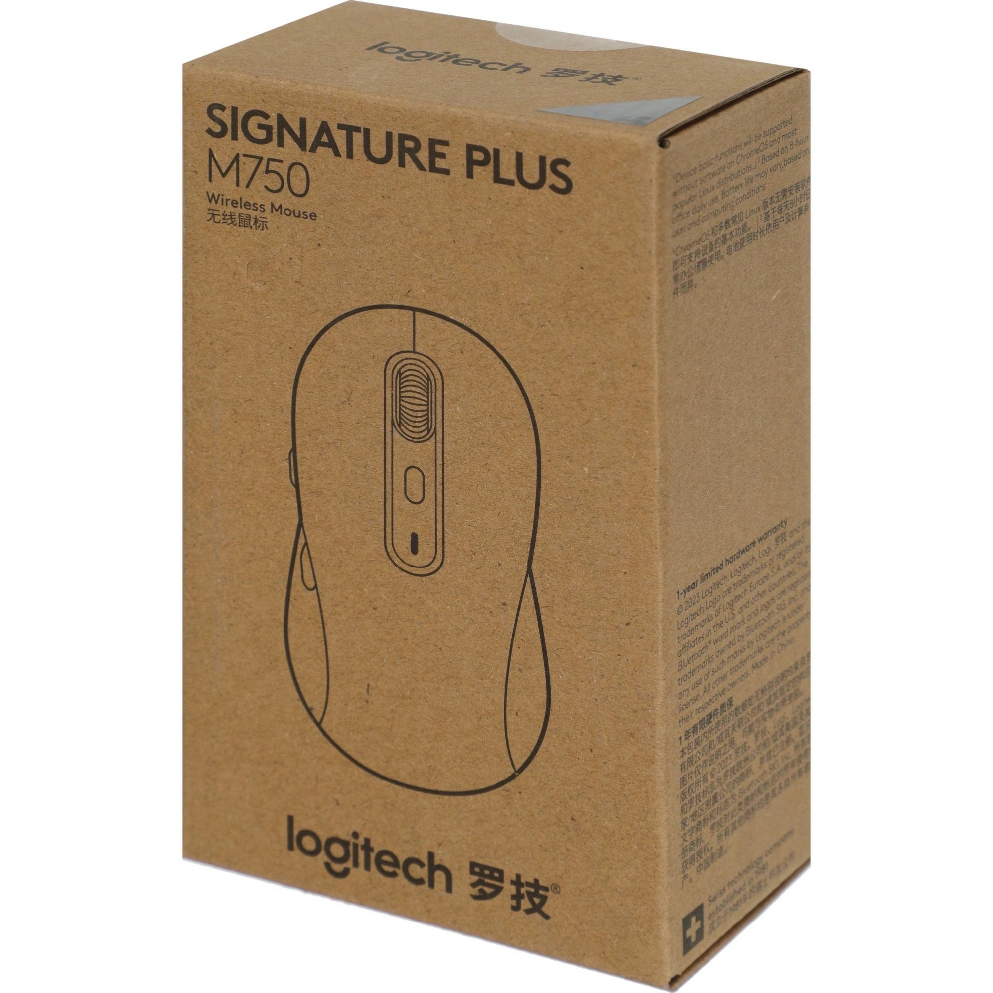 Мышь беспроводная Logitech Signature Plus M750 (910-006269) Черная: это средняя (Medium) версия с теми же 6 кнопками, датчиком Logitech Advanced Optical Tracking (400–4000 DPI), двумя типами подключения (Logi Bolt и Bluetooth LE), дальностью до 10 м и автономностью до 24 месяцев с приемником и до 20 месяцев по Bluetooth от одной AA. Габариты: 107.19?61.80?37.8 мм, вес около 101.2 г (включая батарейку и приемник), совместимость с Windows 10/11, macOS, Linux, ChromeOS, iPadOS 13.4+ и Android 5.0+, поддержка настройки в Logi Options+.