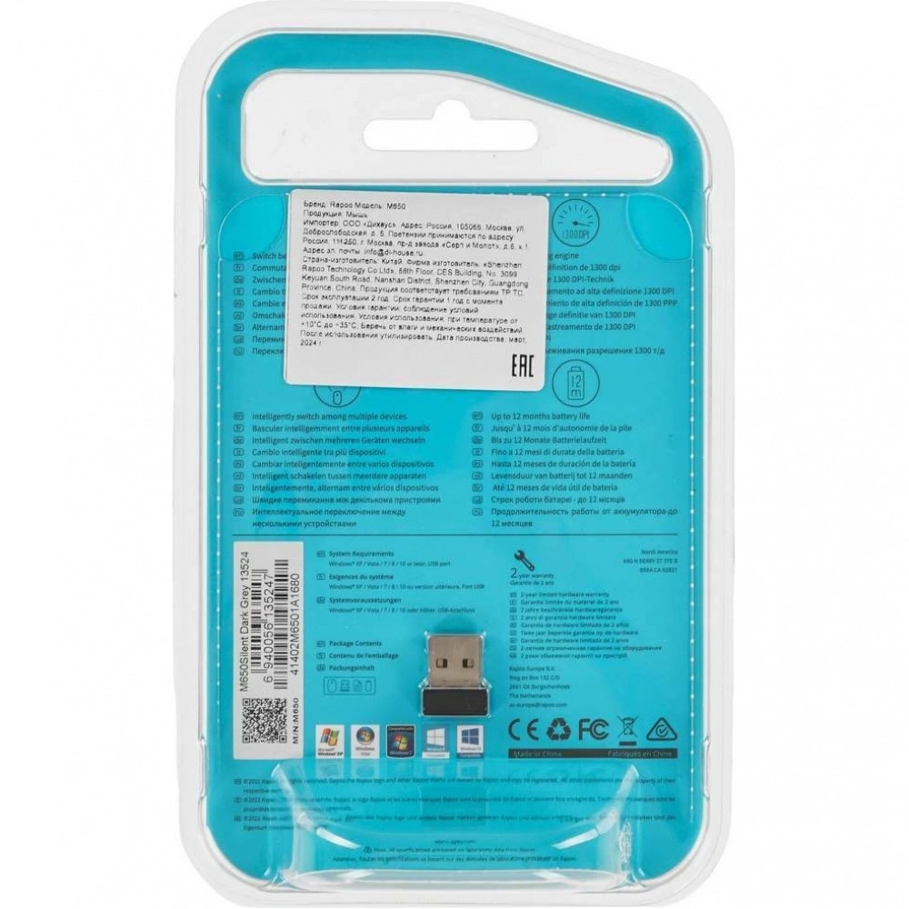 Мышь Rapoo M650 темно-серый (M650-DGRY) - по цене 1533 руб. в интернет-магазине КотоФото. Подробная информация находится на карточке товара - описание, характеристики, фото. Забрать заказ можно из пунктов самовывоза или оформить доставку на дом. Если останутся вопросы, звоните - 8(495)137-52-98 в Москве.
