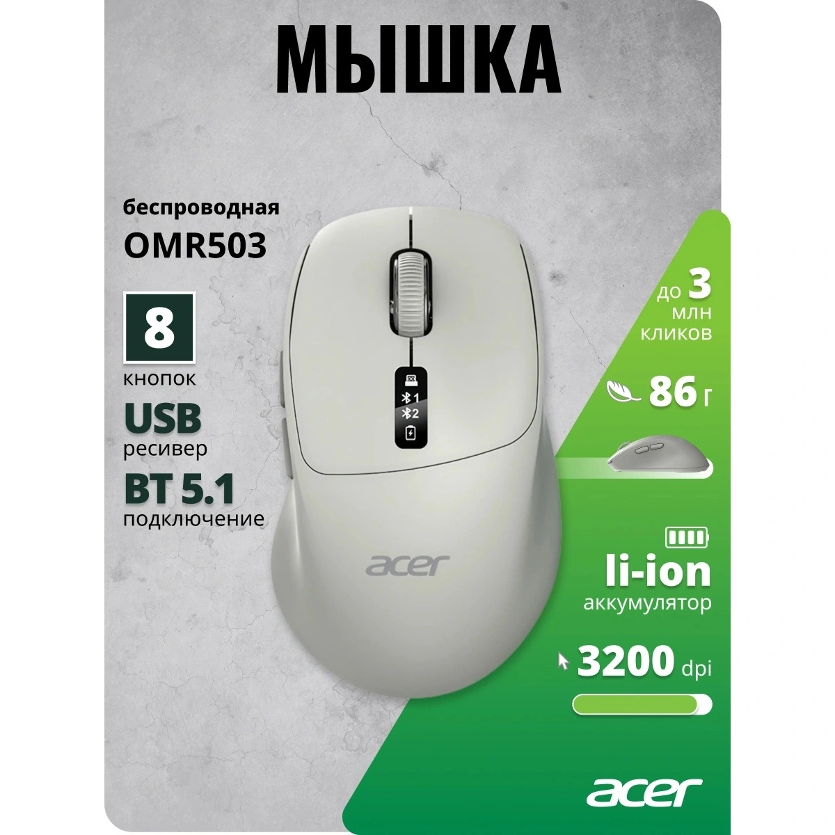 Отзывы о товаре Мышь Acer OMR503 светло-серый (ZL.MCE11.01C)