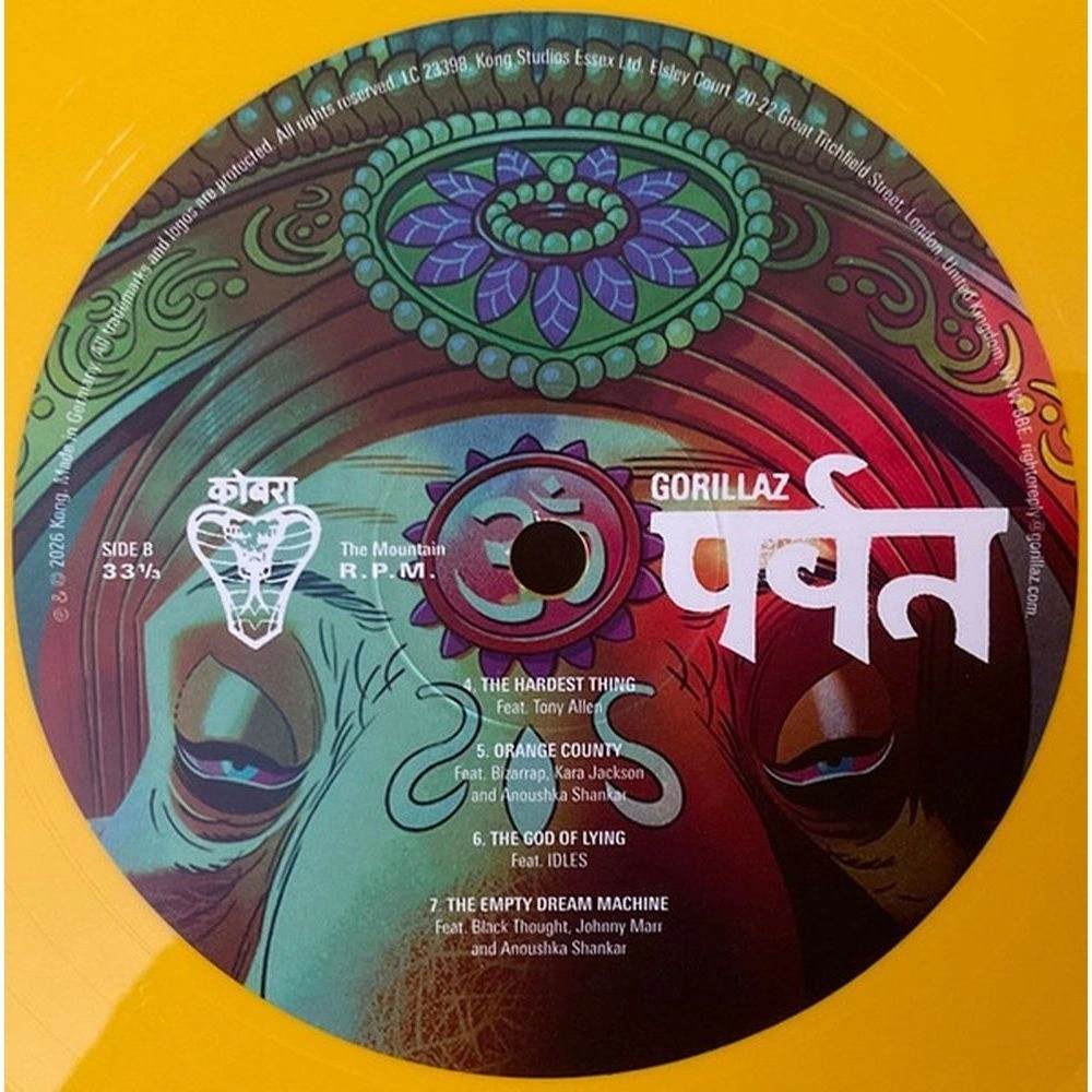Gorillaz возвращаются с «The Mountain», своим девятым студийным альбомом, который выйдет в марте 2026 года на их собственном лейбле KONG. Альбом, включающий в себя коллекцию из 15 песен, расширяет музыкальные горизонты группы благодаря сотрудничеству с другими музыкантами по всему миру и многоязычному повествованию. Лимитированное издание на желтом виниле. Альбом «The Mountain» был записан в разных местах по всему миру — от лондонской студии Studio 13 и Девона до Мумбаи, Нью-Дели, Раджастхана и Варанаси в Индии, а также в Ашхабаде, Дамаске, Лос-Анджелесе, Майами и Нью-Йорке. Исполнения прозвучали на пяти языках: английском, арабском, хинди, испанском и йоруба. Как и большинство работ Gorillaz, альбом The Mountain собрал в себе невероятных музыкантов. В 15 треках вы услышите вклад таких исполнителей, как Idles, Кара Джексон, Ясин Бей, Джонни Марр, Black Thought, Анушка Шанкар и Омар Сулейман. Также в альбоме посмертно приняли участие легенды Бобби Уомак, Дэйв «Trugoy the Dove» Жоликер, Деннис Хоппер, Марк Э. Смит, Proof и Тони Аллен. Визуально работа Джейми Хьюлетта изображает четверых анимированных участников группы в виде кочевников по Индии.