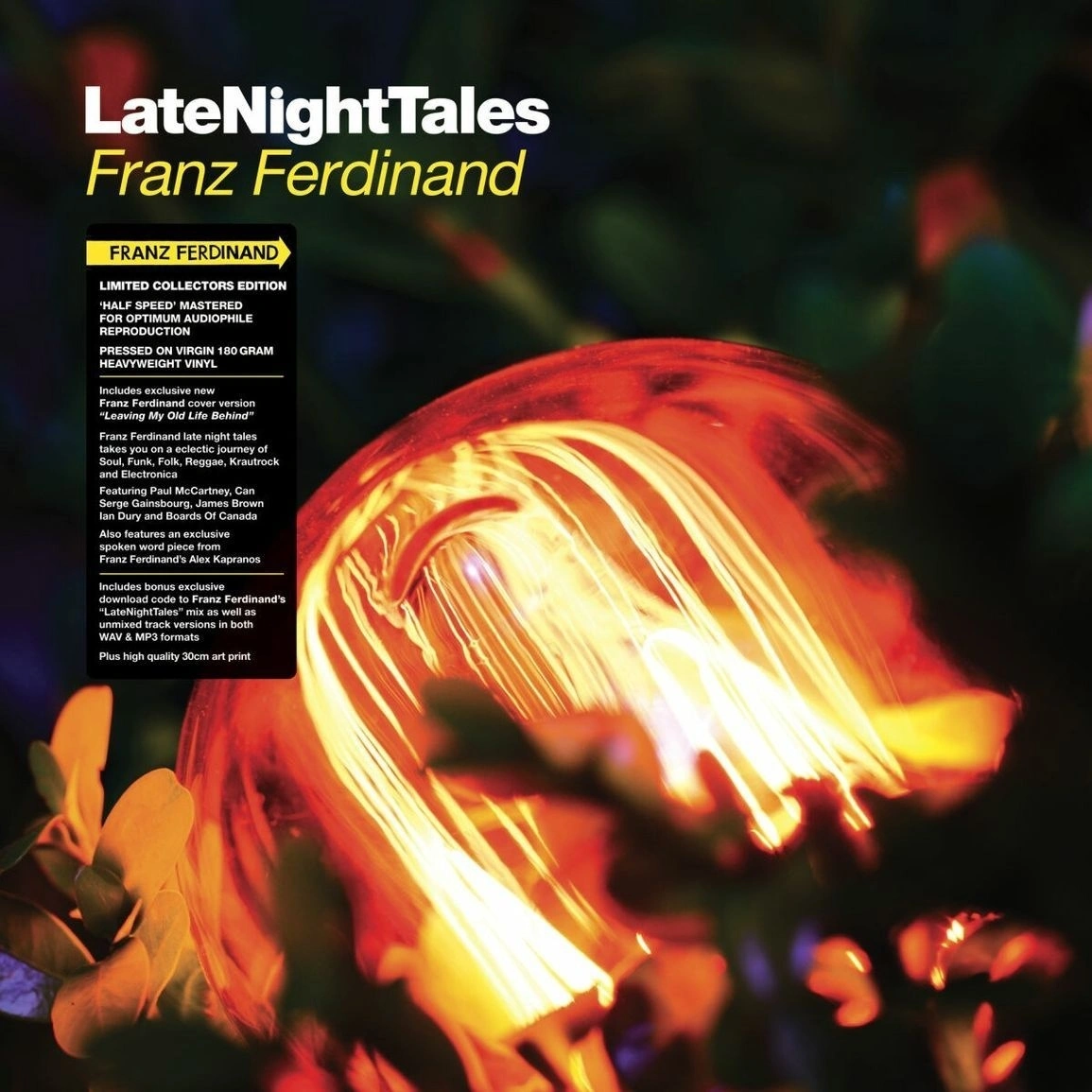 Выпуск 2014 года в серии Late Night Tales - компиляция от британской инди-рок-группы Franz Ferdinand. Издание на виниле 180 г. Franz Ferdinand — одна из самых влиятельных и успешных британских рок-групп последних лет, обладательница различных премий Mercury и Brit. Их личный сет для Late Night Tales из соула, фанка, регги, поп-музыки и краут-рока