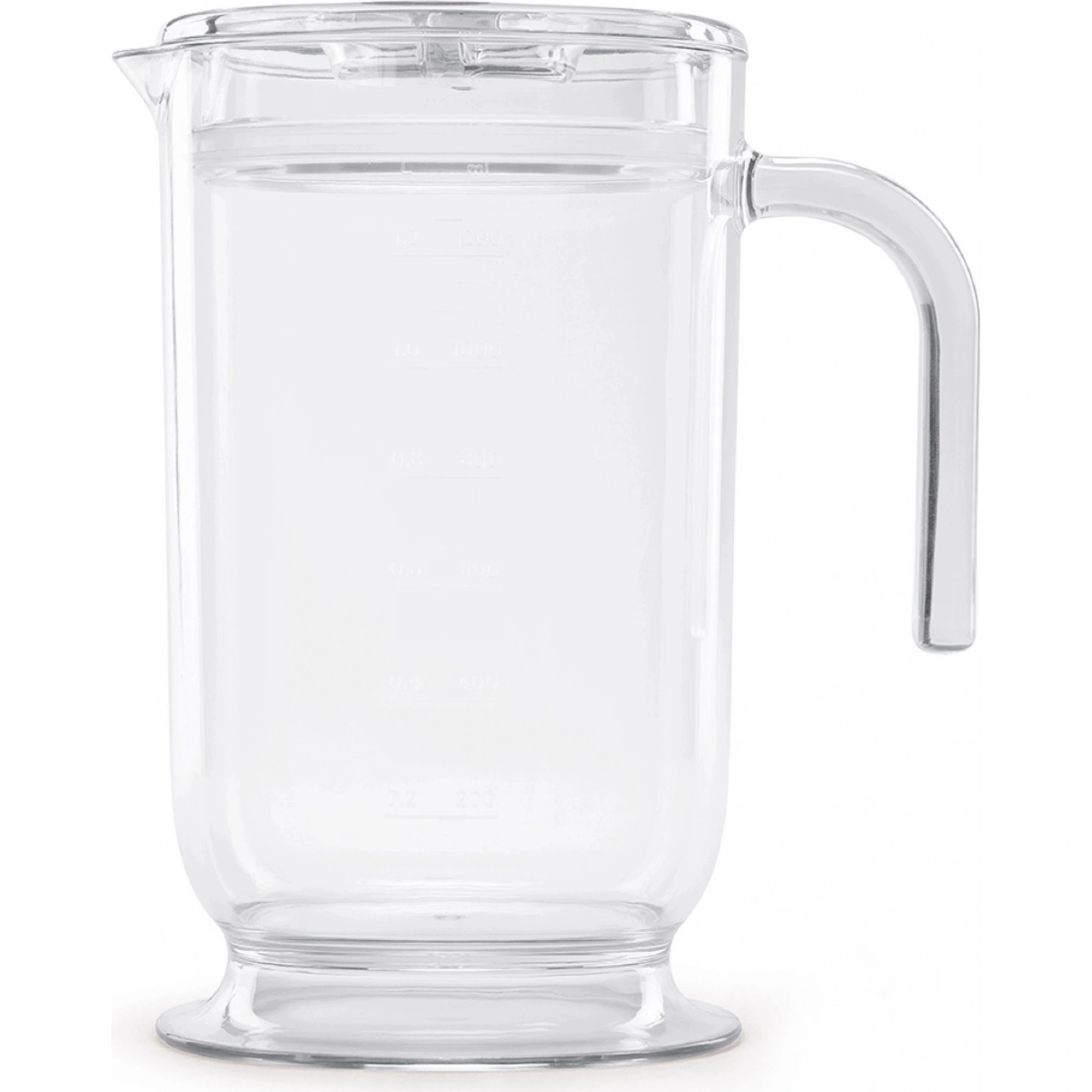 Блендер изготовлен из высококачественных материалов: его ножи выполнены из нержавеющей стали, что гарантирует долгий срок службы и идеальное качество измельчения. Материал чаши измельчителя – пластик, объемом 0,5 л, а удобный кувшин вмещает до 1,4 л продуктов, обеспечивая комфортную работу с большими объемами.