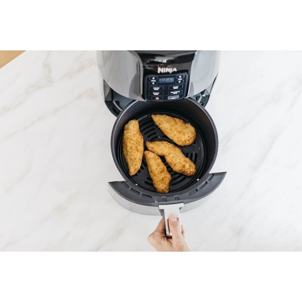 Серый аэрогриль Ninja AF100EU имеет мощность 1550 Вт, объем чаши 3,8 литра, электронный термостат и регулировку температуры в диапазоне от 40 до 210°C. Его удобно использовать благодаря резиновым ножкам, обеспечивающим устойчивость на поверхности. Размеры устройства составляют 34,5 х 27,9 х 33,8 см, а вес - 4,4 кг.