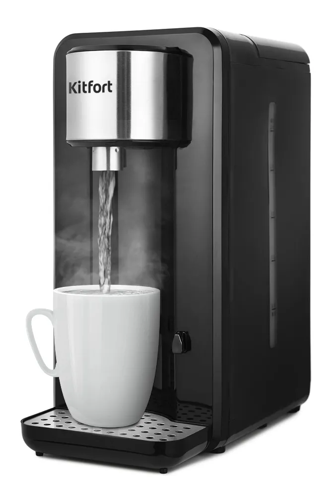 Прекрасный прибор термопот kitfort it-2504, удобно им пользоваться, пожелал кипяточек попить - и он сразу в кружке, ждать не требуется. В связи с тем, что нагрев воды проточный, наливает кружку горячей воды как кофемашина - медленно и аккуратно, но это всего секунд 10 занимает по времени. Выглядит термопот прикольно, похож на небольшую кофемашину. Вообщем вещь нужная и полезная, а главное удобная и компактная, купили и я довольная. Заказала на котофото, сразу оплатила онлайн со скидками, и через день уже получила термопот в магазине котофото и пользуюсь.