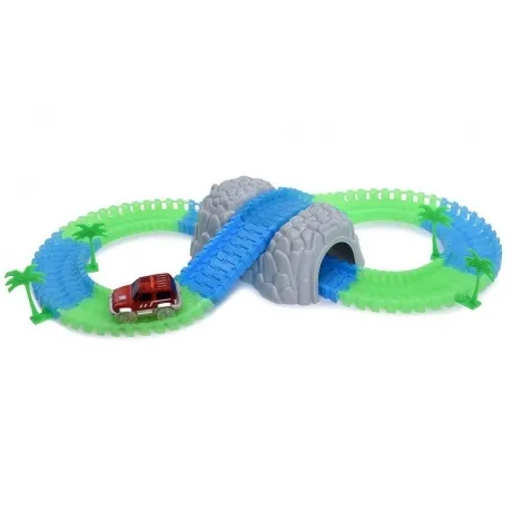 Набор Большое путешествие из серии Гибкий трек подарит бесконечные часы веселья не только детям, но и взрослым. Можно создать трассу, идущую сквозь джунгли, ведь в наборе есть даже пальмы! А начав спуск с горы через пещеру, входящие в набор, машинка обязательно ускорится. Разноцветные элементы трека соединяются между собой, создавая причудливую гоночную трассу практически любой конфигурации. Машинка может сама двигаться по треку и у нее светятся фары.