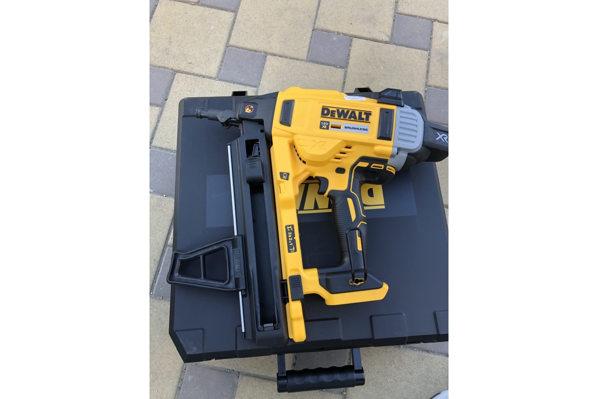 Монтажный пистолет DeWALT DCN890N предназначен для работ по дереву, металлу и бетону благодаря максимальной энергия удара 105 Дж. Инструмент работает от аккумулятора, что делает процесс забивания гвоздей удобным, без необходимости подключения к электросети, использования газа и пороха.