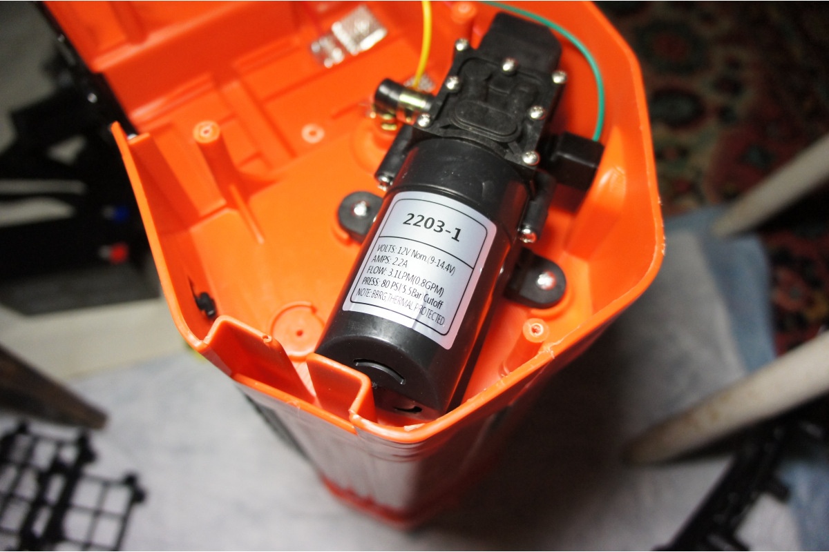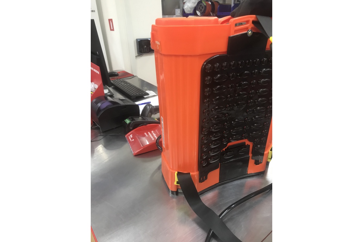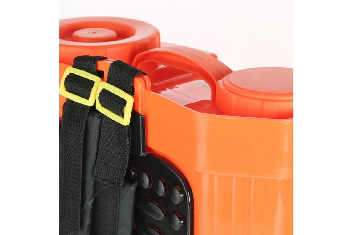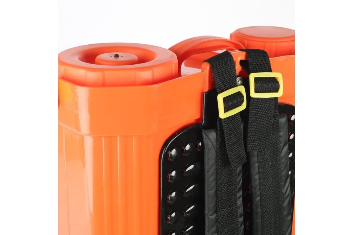 Аккумуляторный садовый опрыскиватель оборудован 16-литровым баком для жидкости. Функционирует от свинцово-кислотной батареи 12 В, 8 Ач. В комплект входят насадки для равномерного распыления раствора. Предусмотрено ременное крепление для удобного ношения агрегата на спине.