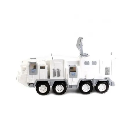 Тягач имеет множество навесных элементов, открывающиеся люки в верхней части кузова. Все двери открываются. Задняя дверь представляет собой опускающийся съезд. Внутри кунга много места для перевозки солдатиков, машинок и других игрушек, что особенно нравится мальчишкам. Безопасный прочный пластик, высокая степень деталировки, надежное крепление подвижных элементов игрушки, открывающиеся двери.