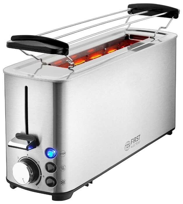 Электронное управление, 7 степеней прожаривания, автоматическое центрирование, функции подогрева, разморозки, отмены, подставка для подогрева булочек, выдвижной поддон для крошек. Вы сможете без труда сделать идеальные тосты для всех членов семьи. А так как устройство сделано из прочных материалов, то прослужит далеко не один год.