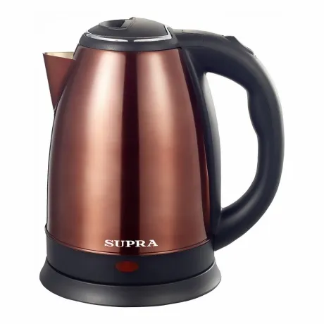Стильный электрический чайник SUPRA KES-1845S из нержавеющий стали красивого медного цвета станет оригинальным украшением вашей кухни и прекрасным подарком друзьям и родственникам на любой праздник или новоселье. Чайник прост в управлении и имеет оптимальный набор характеристик. Объем 1,8 литра и мощность 1500 Вт позволяют быстро вскипятить воду на всю семью, а благодаря вращающейся на 360 градусов подставке, можно повернуть носик чайника в удобное положение. В основании чайника имеется отсек для шнура, с помощью которого вы можете оставить шнур того размера, который нужен именно на вашей кухне. Большая эргономичная ручка выполнена с учетом анатомического строения ладони.