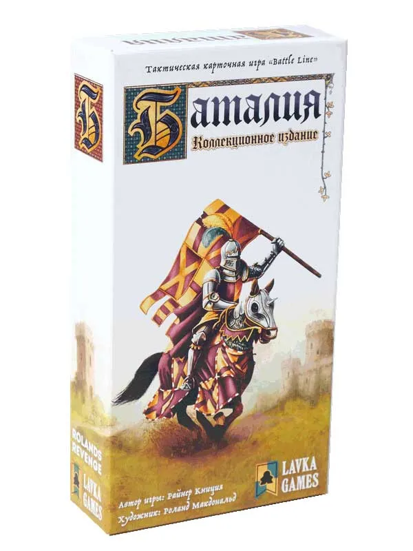 «Баталия» - это увлекательная игра, основной идеей которой служит захват территорий, осуществляемый розыгрышем карт войск с руки. Перед началом игры на стол выкладывается 9 полей сражений. Для победы игроку достаточно захватить 3 соседних поля боя, либо 5 случайных. Каждый игрок разыгрывает в свой ход карту с руки, после чего проверяет, возможно ли провести захват поля боя, за которое идет схватка. В конце хода происходит добор карты – из колоды войск, либо из колоды тактик. Карты воинов пронумерованы от 1 до 10 и различаются по 6 цветам – мастям. Карты тактик позволяют вам разыграть дополнительные спецдействия. Ходы играются по очереди, а поле боя захватывается, когда оба игрока собрали комбинации, со своей стороны.