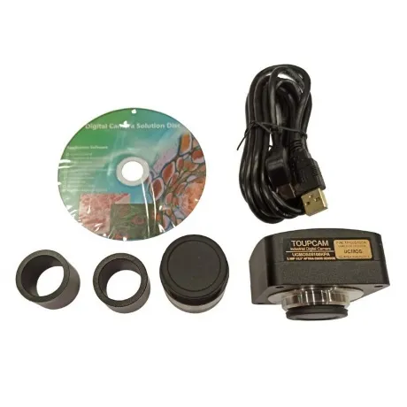 Промышленная цифровая камера (видеоокуляр) USB2.0 в металлическом корпусе для профессиональной микрофотографии. Монтаж на 1-дюймовую C-резьбу (резьба на камере внутренняя). В комплекте C-mount адаптер с множителем увеличения 0.5x, для получения масштаба близкого к окулярному, а также переходные кольца 23.2-30 и 23.2-30.5 мм. Камеры ToupCam совместимы практически с любыми микроскопами прямо из коробки. Особенность промышленных камер ToupCam UCMOS - оптический адаптер, современный и чувствительный сенсор Aptina CMOS, доступ к продвинутым настройкам и функциям, металлический анодированный корпус.