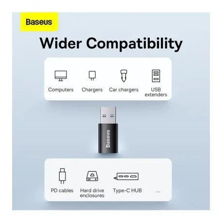 Небольшой адаптер USB-A (USB 3.1) to USB-C от Baseus совместим с широким спектром устройств и позволяет передавать файлы со скоростью до 10 Гбит / с. Он также позволяет быстро заряжать PD (с помощью соответствующего кабеля, который необходимо приобрести и отдельно). Устройство чрезвычайно прочное, но компактное - вы всегда можете иметь его под рукой. Адаптер Ingenuity совместим с большинством популярных устройств. Например, разъем USB-A идеально сочетается с компьютерами, настенными и автомобильными зарядными устройствами, USB-концентраторами и банками питания. Порт USB-C позволяет подключать и кабель быстрой зарядки, и корпус жесткого диска, среди прочего.