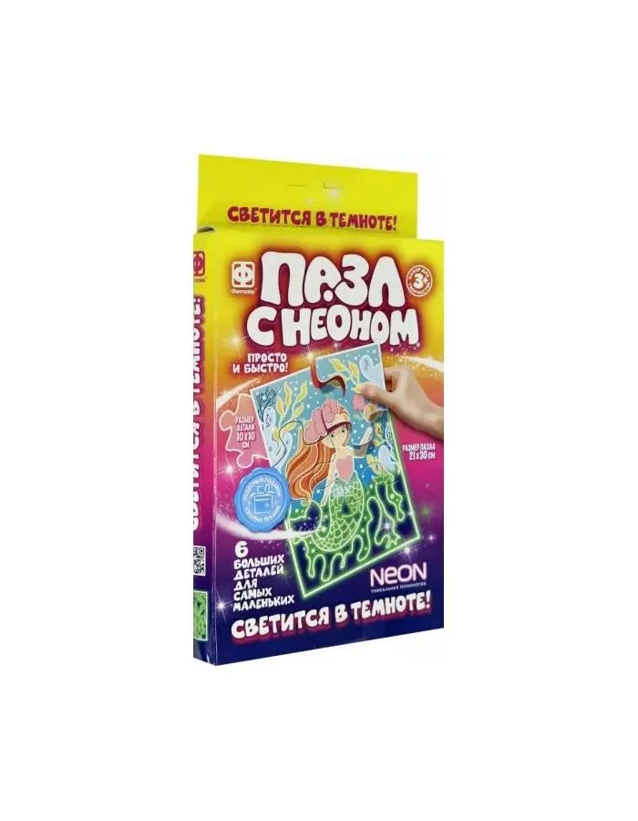 Пазл Фантазёр Пазл с неоном Русалочка 349021 способствует воспитанию у ребенка усидчивости, терпения и аккуратности. Специально для тех. кто любит не только красивые картинки, но и волшебство - пазл с неоном! Малыш с удовольствием соберет его при свете дня, а в темноте он получит еще одно свойство - от него будет исходить волшебный свет!