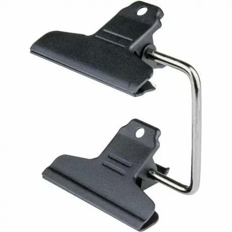 Зажим-прищепка KUPO KCP-348 MULTICLIP изготовлен из прочной стали и представляет собой пару соединенных между собой клипс. Зажимы имеют длину 10,8 см и имеют черное порошковое покрытие. Зажим предназначен для установки фильтров, отражателей, экранов, предметов реквизита и прочего к стойке, перекладине, полке и т.д. Прищепки зажима закреплены на скобе и могут поворачиваться до достижения желаемого положения.