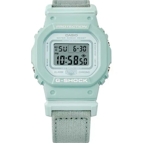 Женские спортивные часы Casio G-Shock, изготовленные из возобновляемых материалов и ориентированные на экологичность. Корпус выполнен из биопластика, который изготавливается из возобновляемых органических ресурсов. Ремешок выполнен из экологически чистого хлопка TrueCotton и окрашен красками Food Textile, которые перерабатывают пищевые отходы для создания натуральных красителей. Циферблат подсвечивается ярким светодиодом. Послесвечение. Световая индикация сигнала. Цвет подсветки: белый. 12-ти и 24-х часовой формат отображения времени. Секундомер с двумя точностями показаний: 1/100 сек. (до 1 часа) и 1 сек. (после 1 часа) и временем измерения 24 часа, сплит-хронограф. Таймер обратного отсчета от 1 сек. до 24 часов с автоповтором. Батарейка рассчитана на 3 года. Стальная задняя крышка крепится на 4-х винтах. Ремешок с классической застежкой. Вес часов 47 грамм.