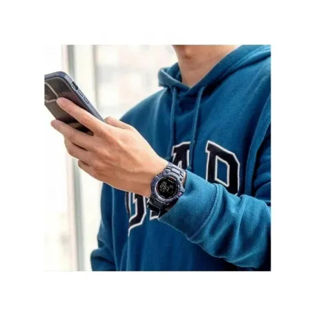 Противоударный корпус защищает механизм от ударов и вибрации. Светодиодная автоматическая супер-подсветка с выбираемой длительностью свечения 1.5 или 3 секунды. Дисплей mip LCD позволяет легко считывать данные даже в темноте. Базовые функции: 12-ти и 24-х часовой формат времени. Секундомер с точностью показаний 1 сек. и временем измерения 99 часов, сплит-хронограф. Возможность установить 5 таймеров. Таймер обратного отсчета от 1 сек. до 1 часа с автоповтором. Количество повторений таймера устанавливается от 1 до 20. Мировое время – 38 городов (38 часовых поясов), всемирное координированное время (UTC), включения/отключения летнего времени. Функция тренировки отображает данные о расстоянии, скорости, темпе, сожженных калорий (до 100 пробежек, до 140 кругов за одну пробежку). Приложение Life Log Data отобразит ежедневное количество шагов или ежемесячные данные о пробежках. Связь с GPS для более быстрой калибровки измерений расстояния, что позволяет более точно измерять пробег, даже когда ваш телефон выключен. Беспроводная технология Bluetooth со сверхнизким потреблением энергии для синхронизации со смартфоном. При подключении к смартфону часы корректируют текущее время, дату и мировое время – 300 городов, а также включение/отключение летнего времени. Режим полета. Функции отключения/включения звука и виброоповещения, энергосбережения, поиска телефона, настройки функции тренировки. Управление данными журнала тренировок. Алюминиевый безель. Ремешок с классической застежкой. Вес часов 69 грамм.