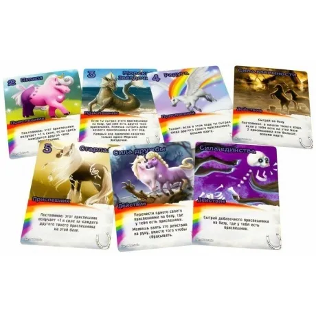 Встречайте новую банду в мире настольных игр! Они невероятно опасны: один неверный ход, и даже самые мощные динозавры, зомби и пришельцы окажутся побежденными… в лучах любви и доброты!. «Замес: Мимими» приглашает вас в мир, где самые очаровательные существа сражаются за победу! Котики завораживают врагов своими милыми глазками, подчиняя их волю. Принцессы покоряют своей красотой и королевскими манерами. Феечки наводят хаос, осыпая врагов волшебной пылью. А несокрушимые пони доминируют и побеждают с помощью силы космической дружбы!. Эта игра рассчитана на двоих, но её легко можно объединить с базовой версией «Замес» и другими дополнениями, чтобы создать ещё больше увлекательных комбинаций и играть в большой компании. «Замес: Мимими» — это идеальная настольная игра для всей семьи. Подходит для детей от 12 лет и взрослых, обеспечивая веселье на дружеских вечеринках и семейных вечерах. Развлекательная и развивающая настолка, которая станет отличным дополнением к вашей коллекции от Hobby World!