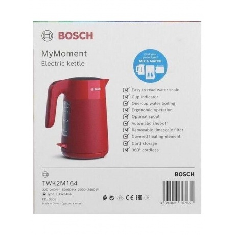 Преобразите ваш кухонный уголок с электрическим чайником Bosch TWK2M164, который сочетает в себе идеальный стиль, функциональность и надежность. Этот элегантный чайник станет не только практичным помощником, но и стильным элементом вашего интерьера. Электрический чайник Bosch TWK2M164 — надежный и стильный выбор для любителей чая и кофе. Этот чайник позволит вам быстро и удобно готовить горячие напитки, добавив элегантности в любой кухонный интерьер. Приобретите Bosch TWK2M164 и наслаждайтесь новыми уровнями комфорта и стиля!