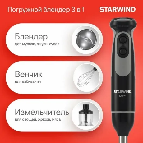 Описание товара Блендер погружной Starwind SBP3412 1200Вт черный/серый