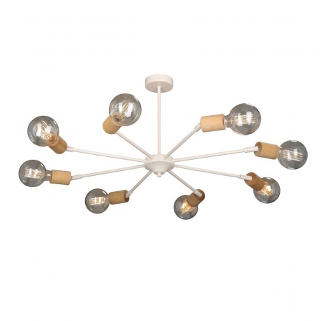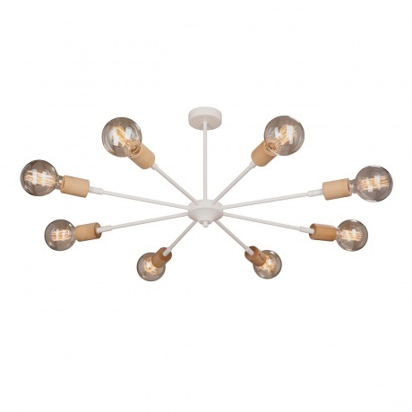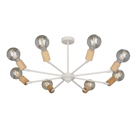 люстра vitaluce v4864-0/8pl предназначена для потолочного монтажа, имеет стиль лофт и белый глянцевый цвет каркаса, оснащена 8 лампами накаливания с цоколем e27 и максимальной мощностью 40 вт каждая, общая мощность составляет 320 вт, площадь освещения до 24 кв.м.