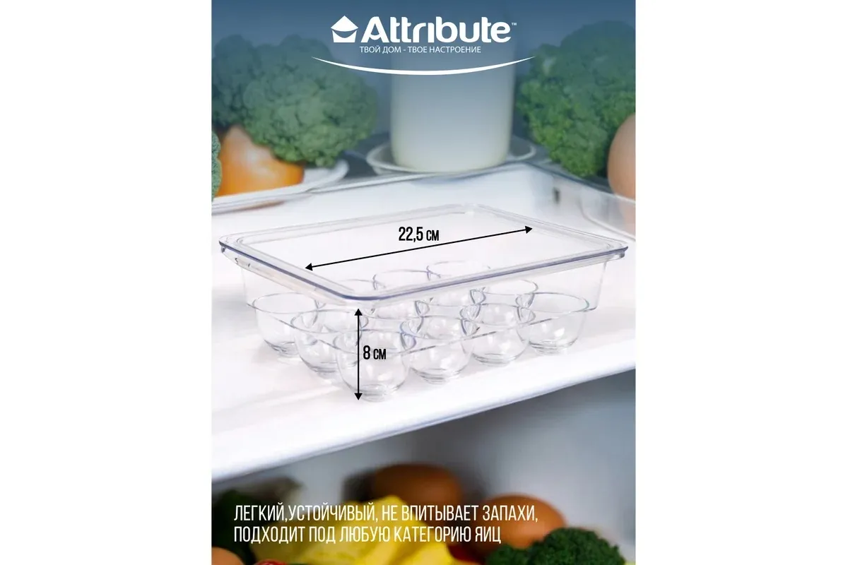 Удобные выемки для яиц идеального размера обеспечивают надёжное размещение яиц различных категорий, включая С2, С1 и отборную категорию. Контейнер легко открывается и закрывается благодаря удобной защелкивающейся крышке.